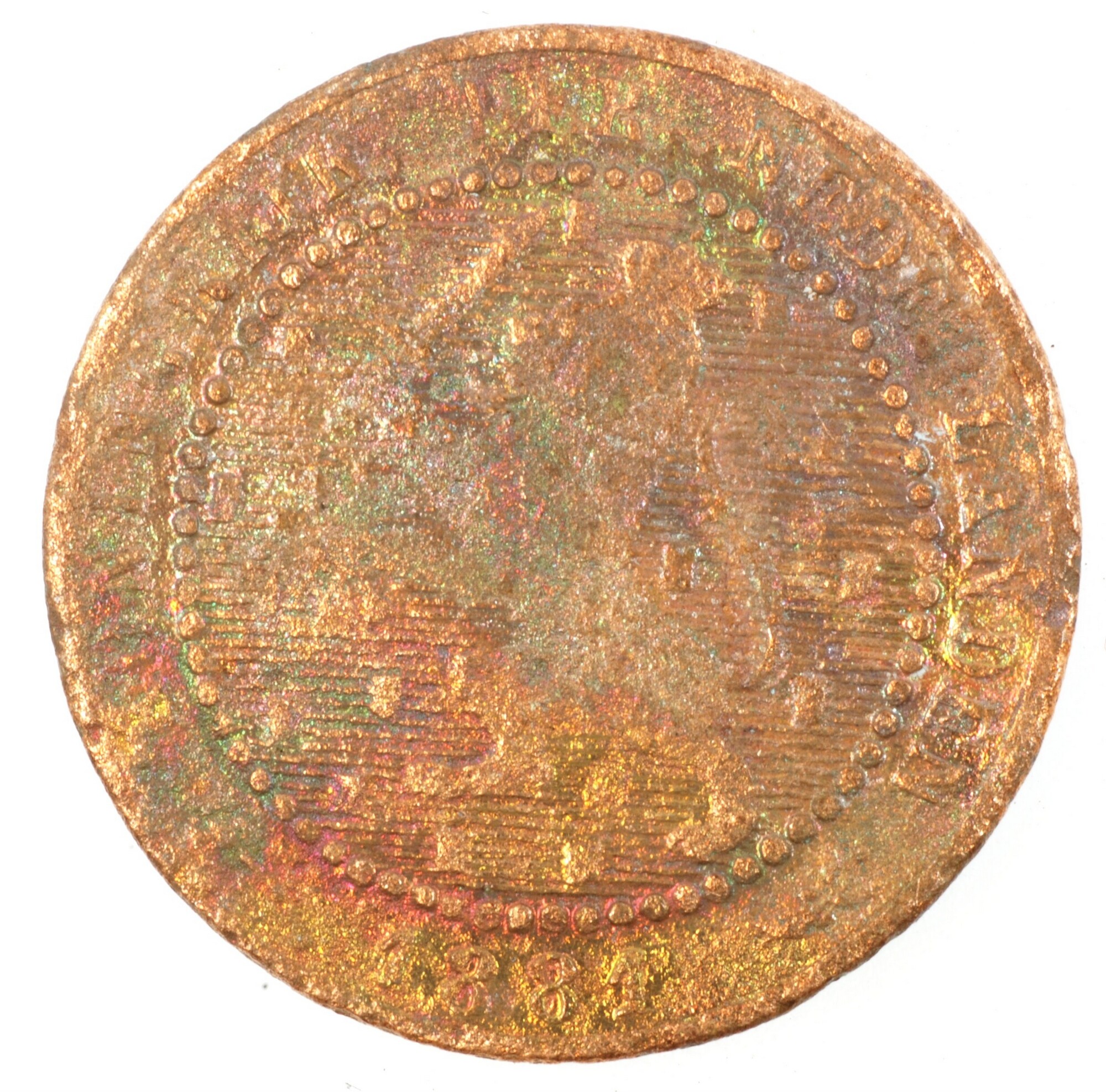 Cent; Nederland Koninkrijk (1813-heden); Willem III (1849-1890); vz.: klimmende leeuw naar links met zwaard en pijlenbundel op een veld van azuur met zeventien blokken binnen parelcirkel, met omschrift (bijl) KONINGRIJK DER NEDERLANDEN (mercuriusstaf) 1881; kz.: binnen een krans van twee samengebonden oranjetakken in twee regels: 1 / CENT; muntplaats: Utrecht; gewicht: 1.92 gram; referentie: Schulman ...