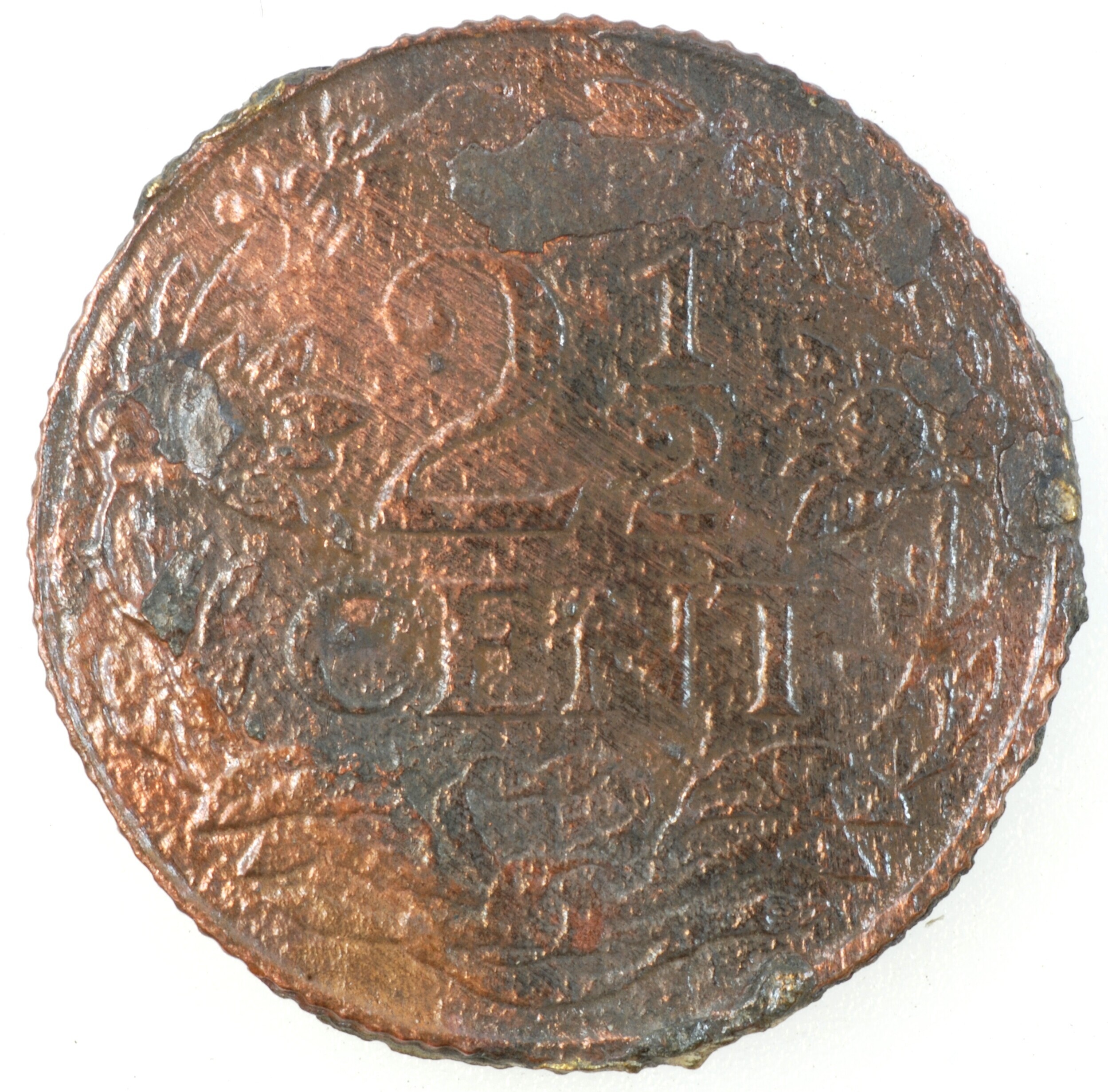 Tweeënhalve cent; Nederland Koninkrijk (1813-heden); Wilhelmina (1890-1948); vz.: klimmende leeuw naar links met zwaard en pijlenbundel op een veld van azuur met vijftien blokken binnen parelcirkel, met omschrift [(zeepaardje)] KONINGRIJK [DER NEDERLANDE]N (mercuriusstaf) 1916; kz.: binnen een krans van twee samengebonden oranjetakken in twee regels: 2 ½ / CENT; muntplaats: Utrecht; 3.33 gram; referentie: Schulman ...
