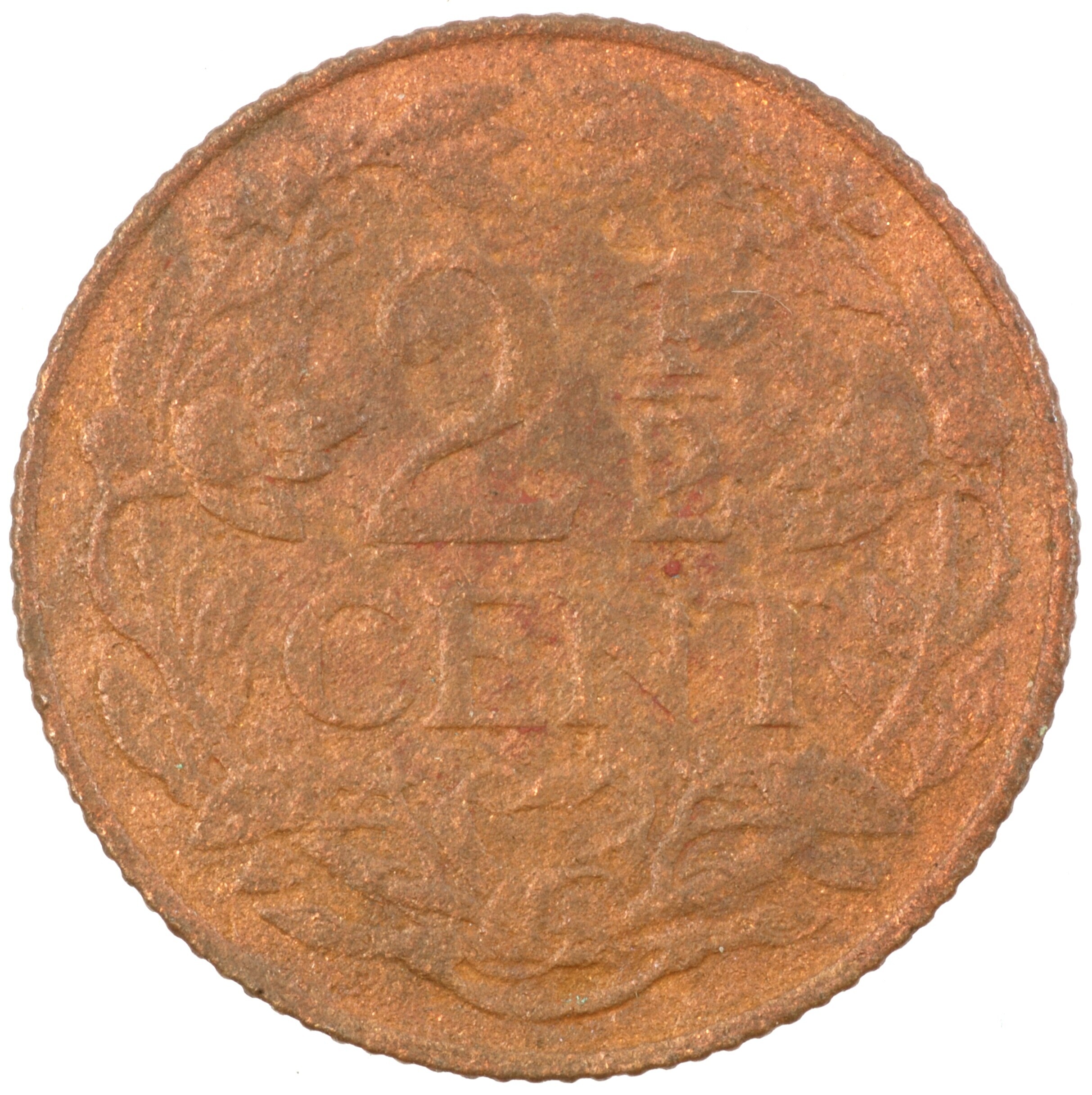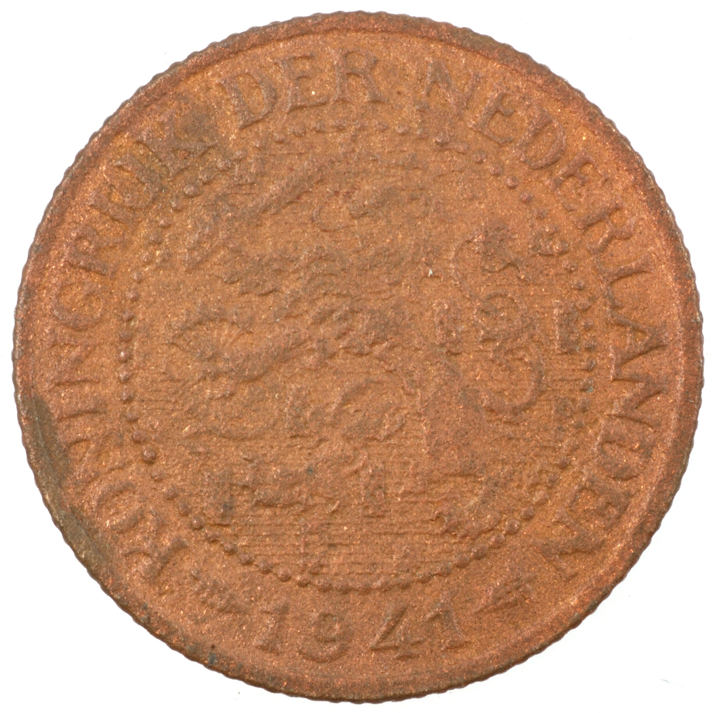Tweeënhalve cent; Nederland Koninkrijk (1813-heden); Wilhelmina (1890-1948); vz.: klimmende leeuw naar links met zwaard en pijlenbundel op een veld van azuur met vijftien blokken binnen parelcirkel, met omschrift (hellebaard) KONINGRIJK DER NEDERLANDEN (mercuriusstaf) 1941; kz.: binnen een krans van twee samengebonden oranjetakken in twee regels: 2 ½ / CENT; muntplaats: Utrecht; 3.73 gram; referentie: Schulman ...
