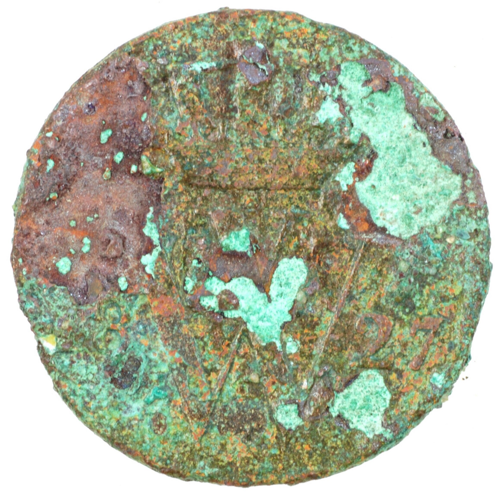 Halve cent; Nederland Koninkrijk (1813-heden); Willem I (1813-1840); vz.: gekroond W met ter weerszijden [1]8 – 27; kz.: gekroond Nederlands wapen met ter weerszijden ½ - C., met onder het wapen (fakkel) en (mercuriusstaf); muntplaats: Utrecht; gewicht: 1.69 gram; referentie: Schulman 357