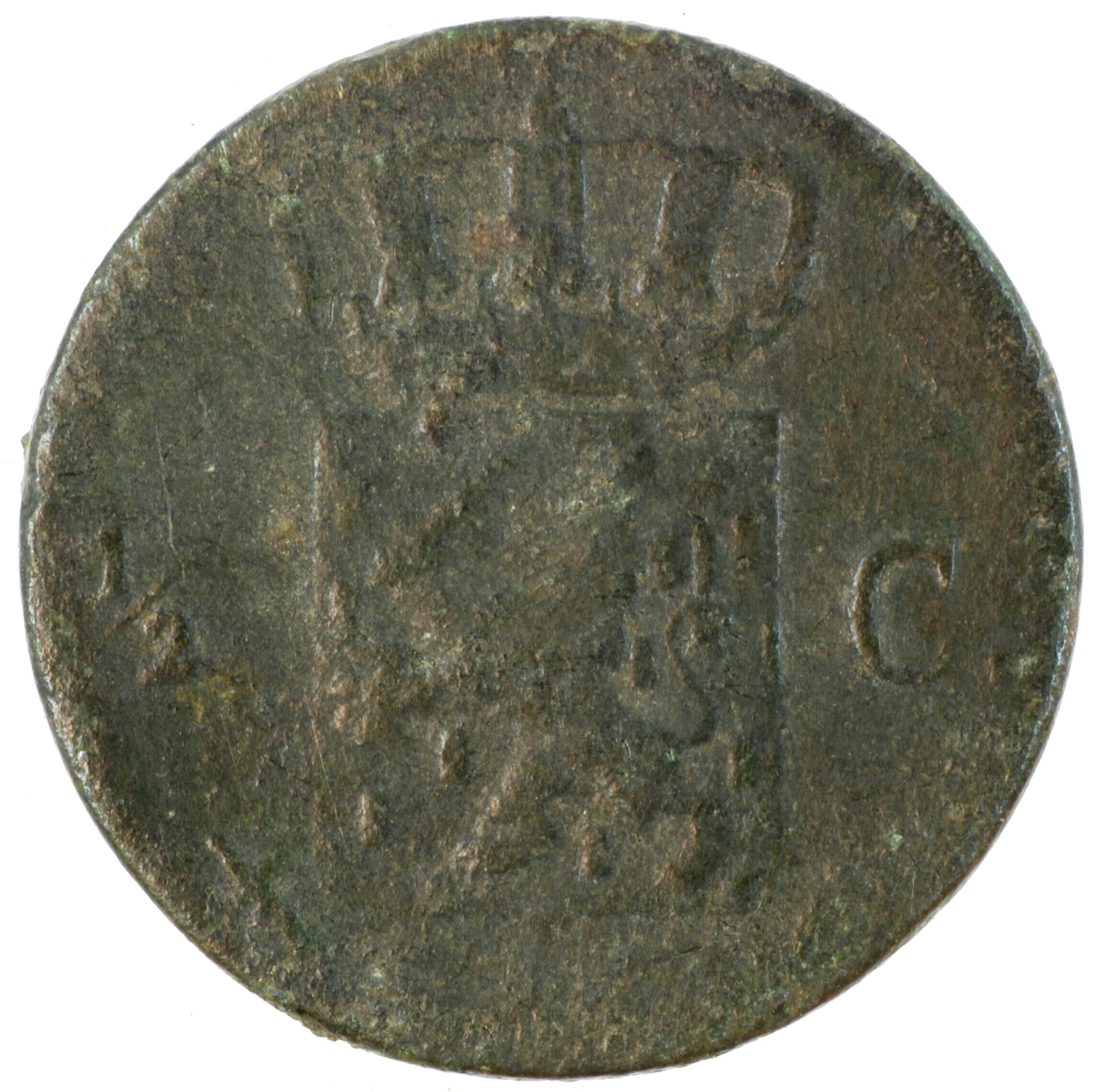 Halve cent; Nederland Koninkrijk (1813-heden); Willem III (1849-1890); vz.: gekroond W met ter weerszijden 18 – 72; kz.: gekroond Nederlands wapen met ter weerszijden ½ - C., met onder het wapen (zwaard) en (mercuriusstaf); muntplaats: Utrecht; gewicht: 1.64 gram; referentie: Schulman 719