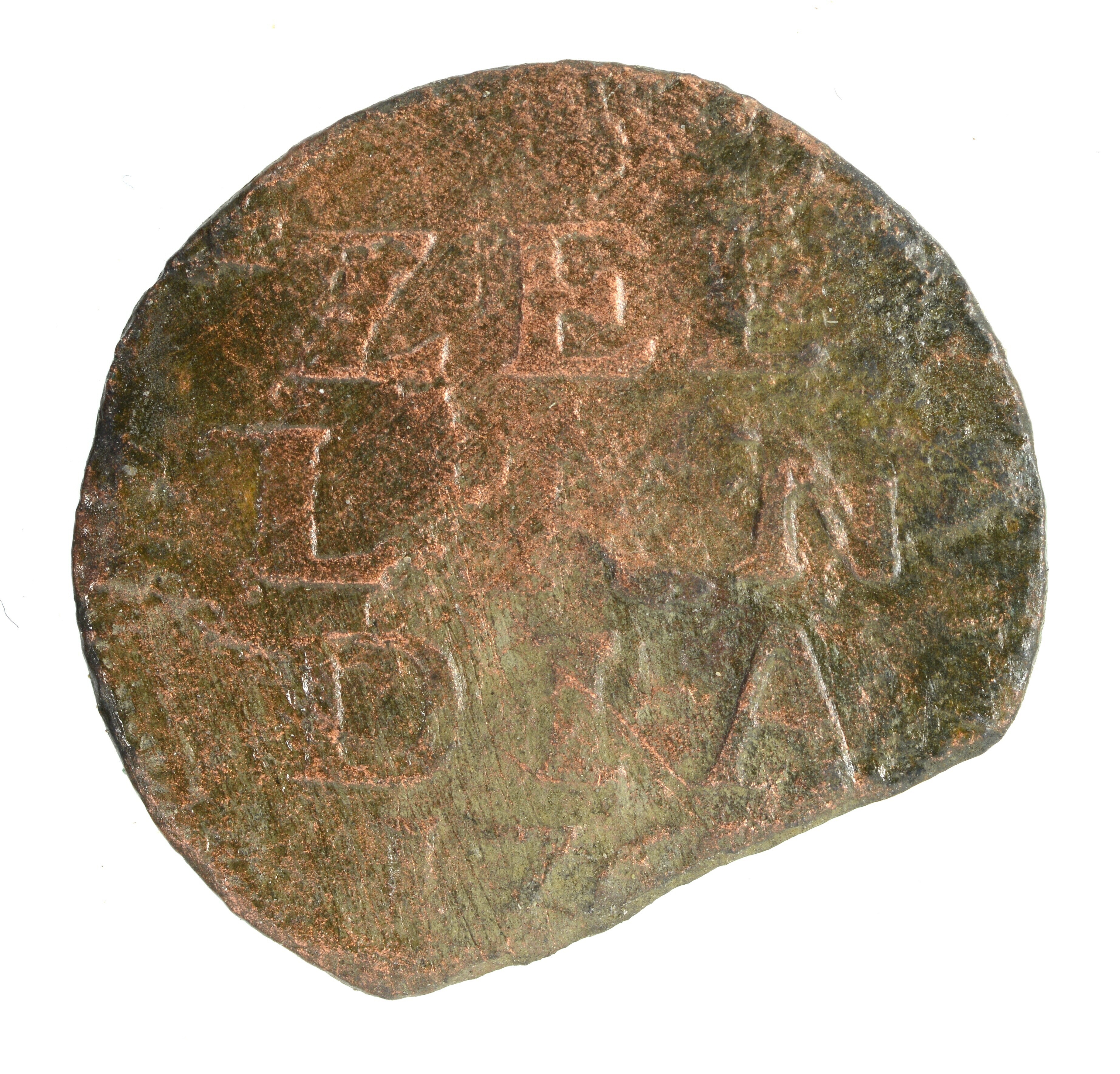 Duit; Zeeland Provincie (1581-1795); vz.: ZEE LAN DIA in drie regels; kz.: Een gekroond ingebogen wapen met leeuw in de golven; gewicht: 2.03 gram