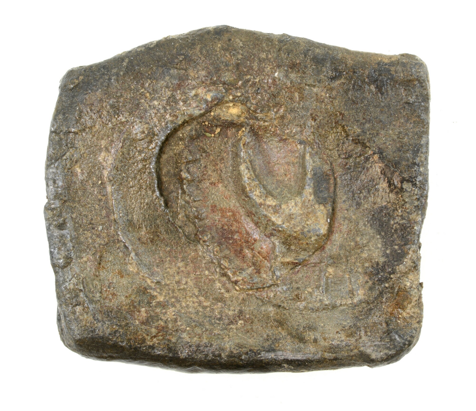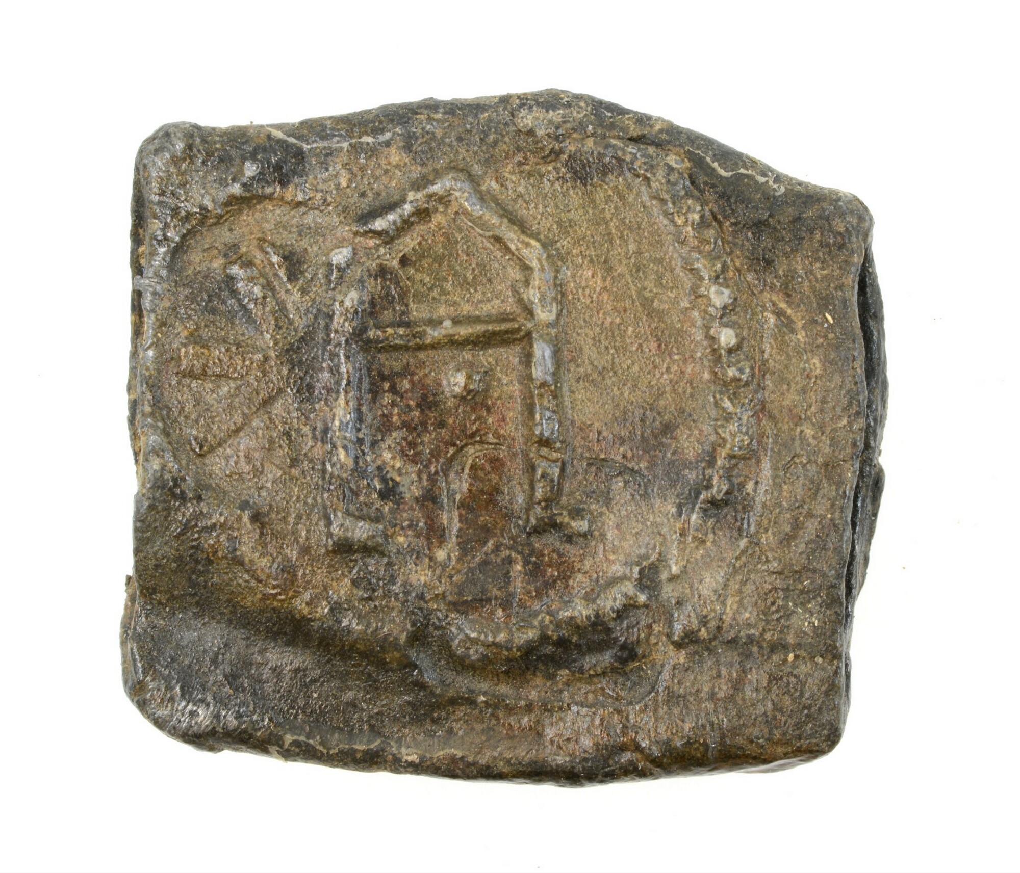 Pijplood; pb-tex; vz.: letter A binnen parelrand; kz.: onduidelijk; herkomst: mogelijk Augsburg; gewicht: 17.87 gram