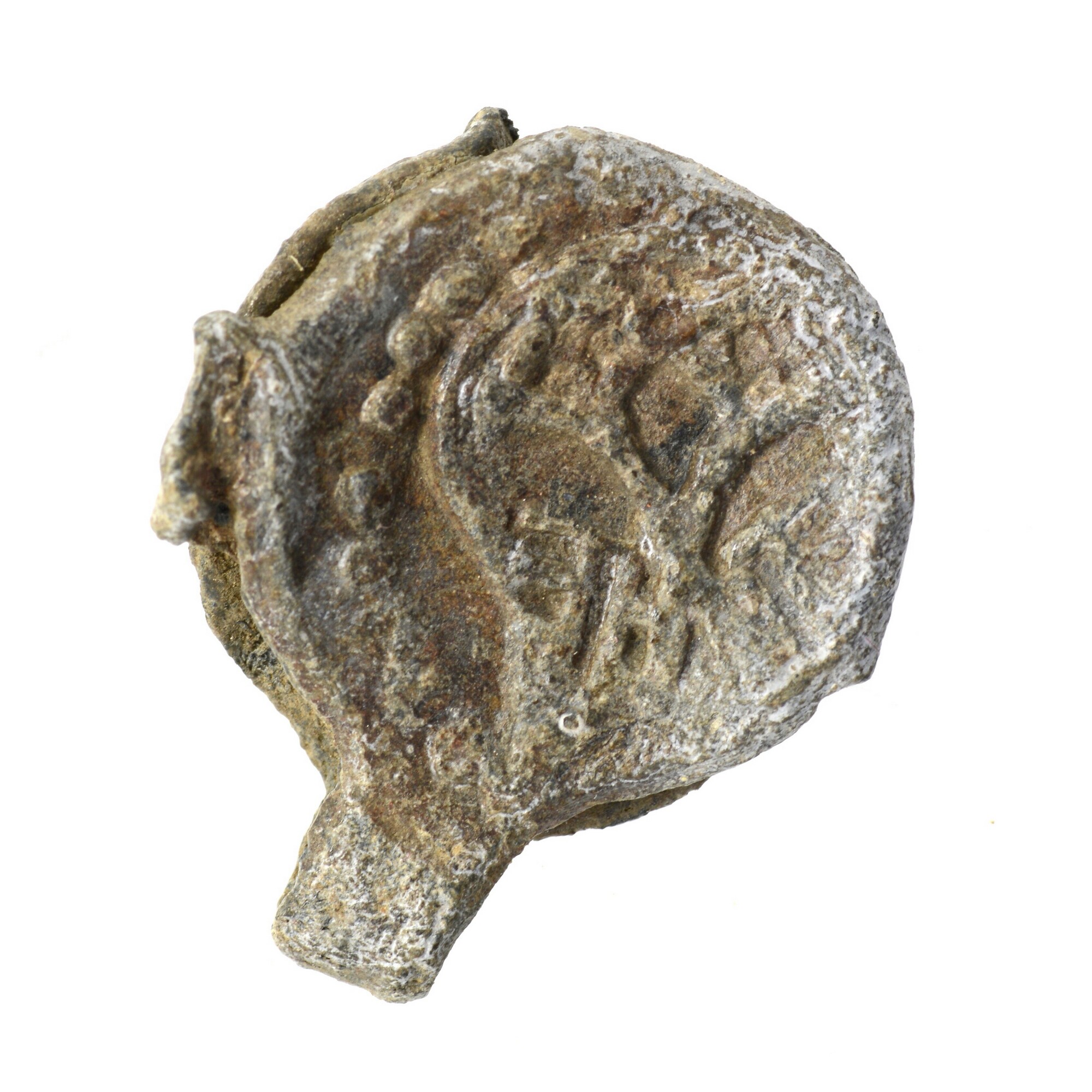 Textiellood; vz.: wapenschild met gekruiste sleutels, kz.: Romeins cijfer; herkomst: Leiden