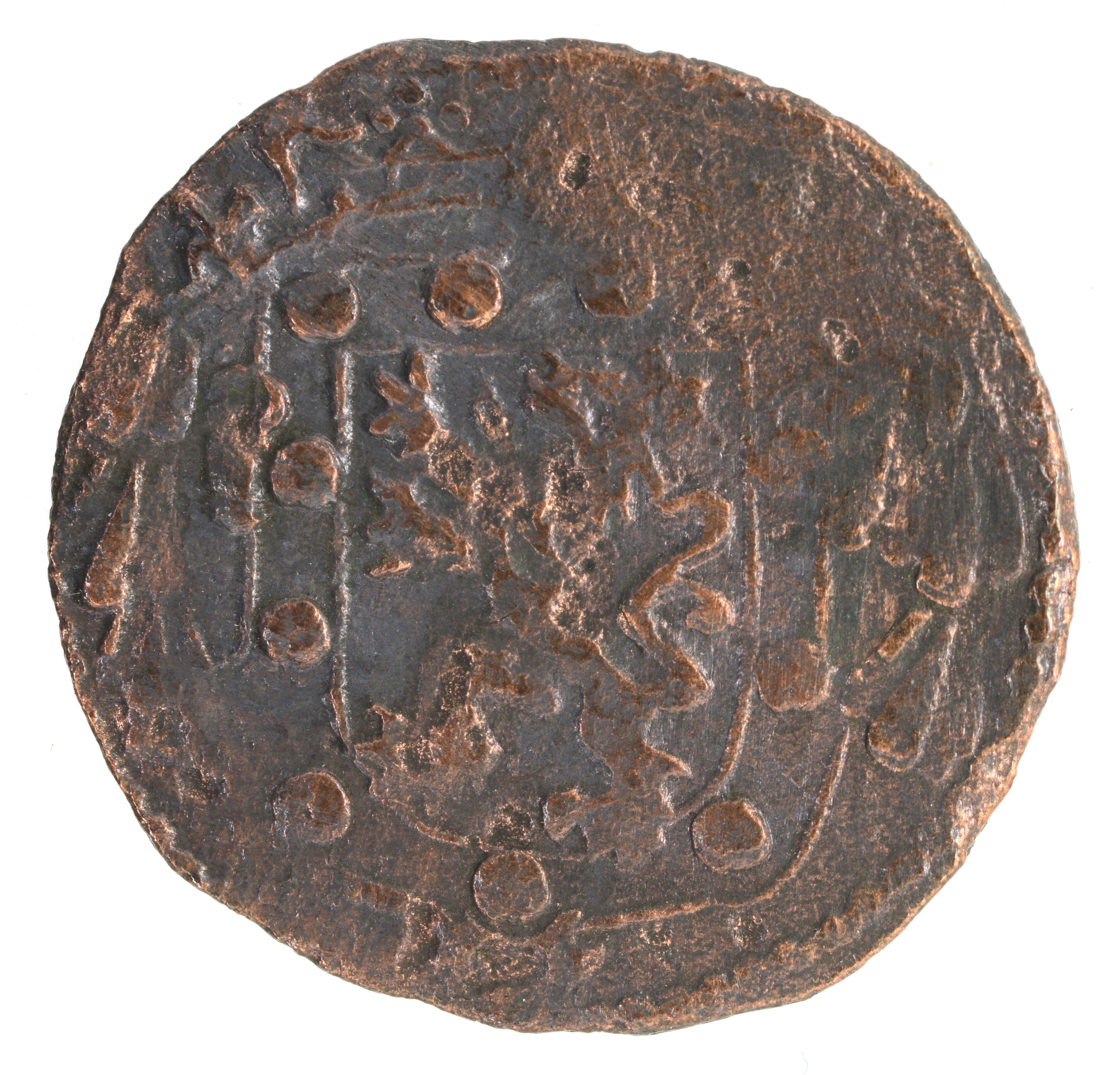 Duit; Stevensweert; Herman Frederik van den Bergh van Stevensweerd (1626-1632); vz.: Een tulpkrans met daarin SST INSV LA in drie regels; kz.: Gedeeltelijke tulpkrans om een gekroond wapenschild met een klauwende leeuw. De rand van het schild is versierd met kleine of grote bollen (bezanten); gewicht: 1.54 gram