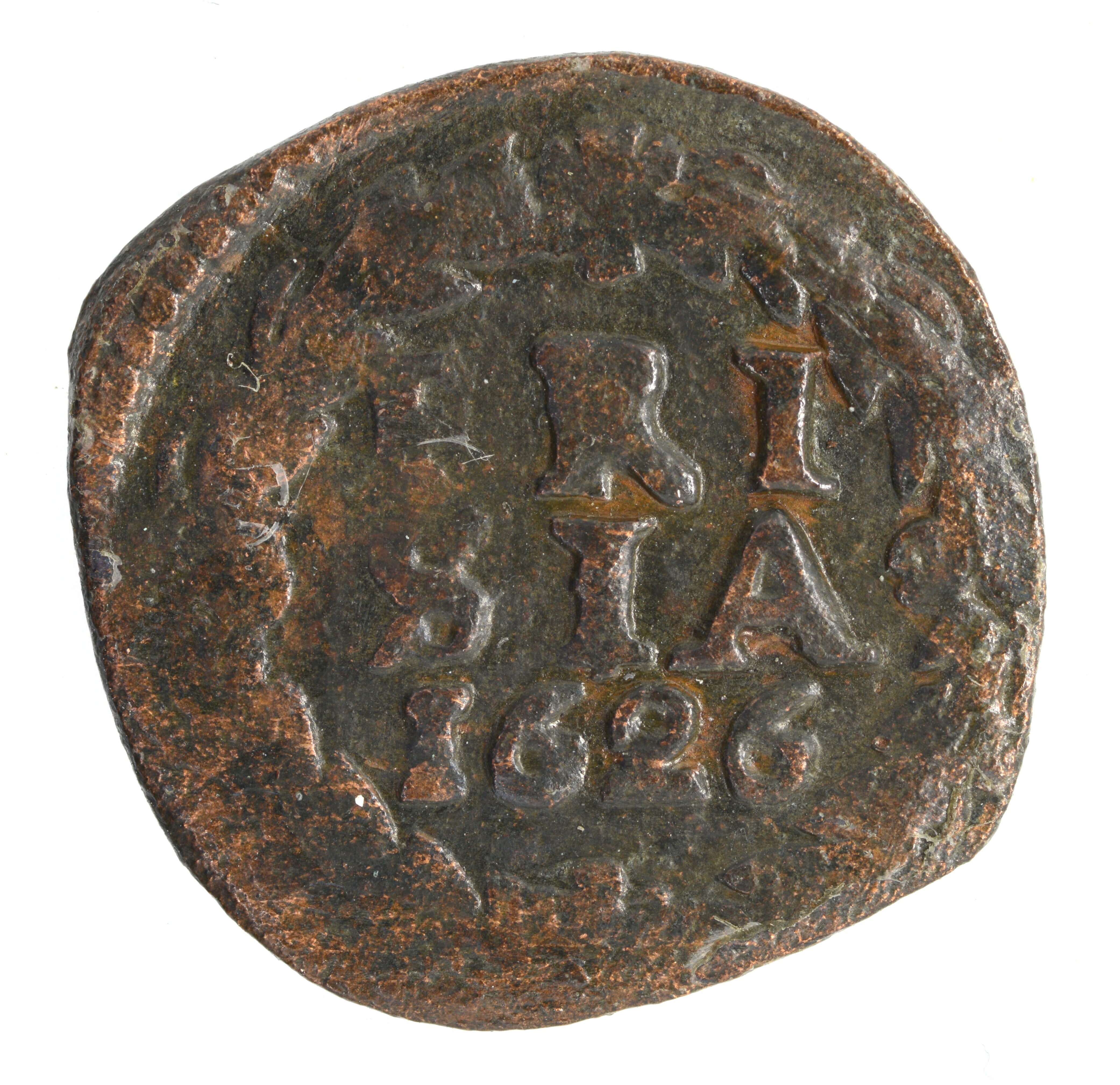Duit; Friesland Provincie (1581-1795); vz.: Een tulpkrans met daarin de tekst FRI SIA in twee regels, daaronder het jaartal 1626; kz.: Gekroond wapen van Friesland met twee gaande leeuwen boven elkaar; gewicht: 1.68 gram