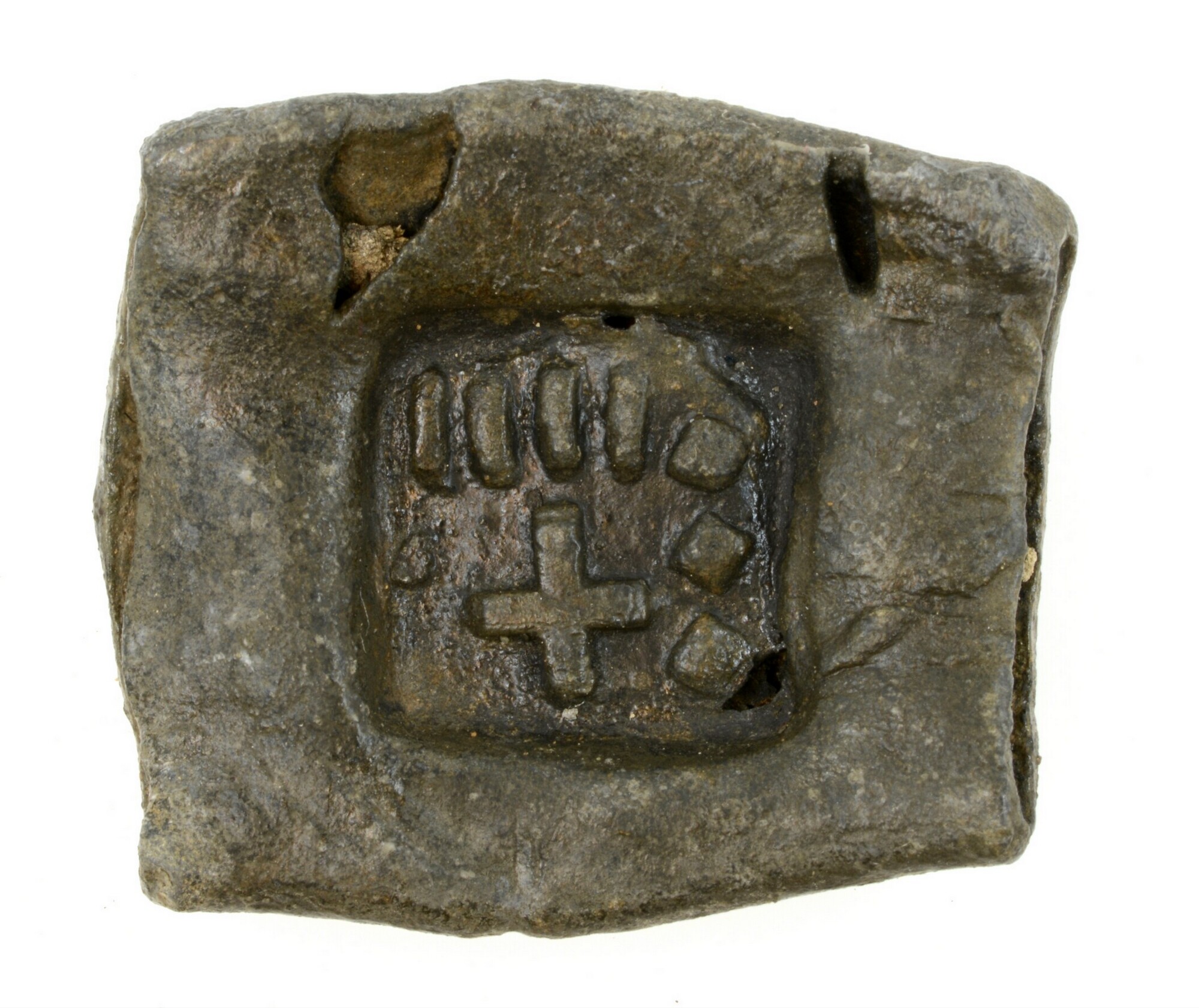 Pijplood; vz.: onduidelijke stempel; kz.: een stempel met klop