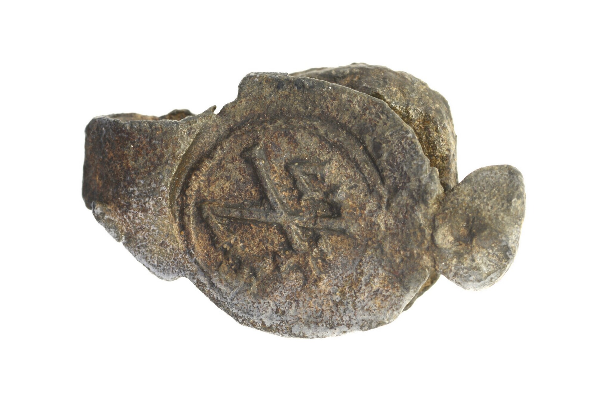 Deelbewerkingslood/textiellood; pb-tex; vz.: huismerk en initalen VH; kz.: ingekrast telmerk