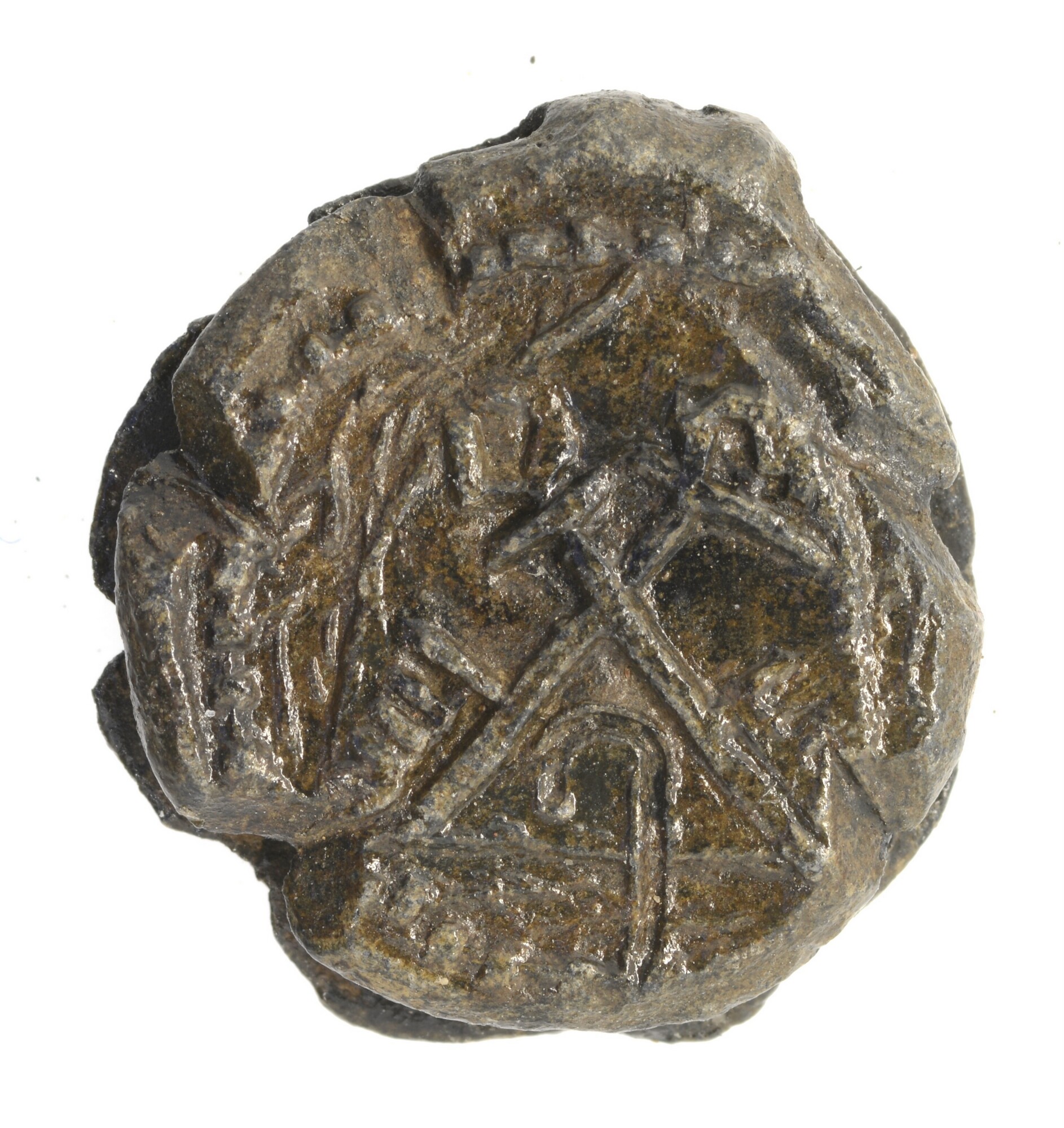 Textiellood; pb-tex; vz.: wapen met gekruiste sleutels en letter L, klop?; kz.: wapen met gekruiste sleutels en letter L; herkomst: Leiden