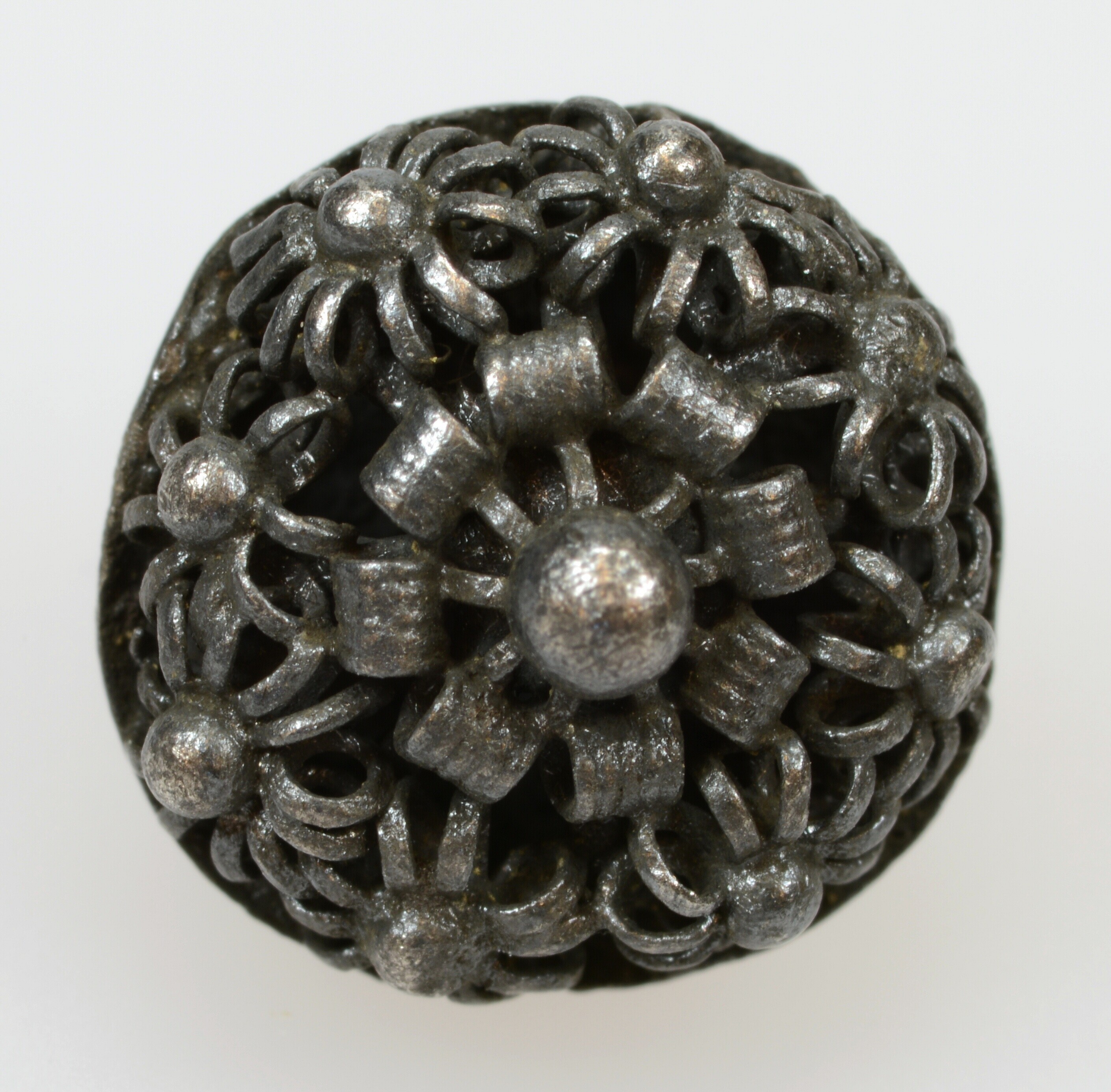 Keelknoop; vz: filigrain geometrisch motief; kz: leeg; gewicht: 1.61 gram