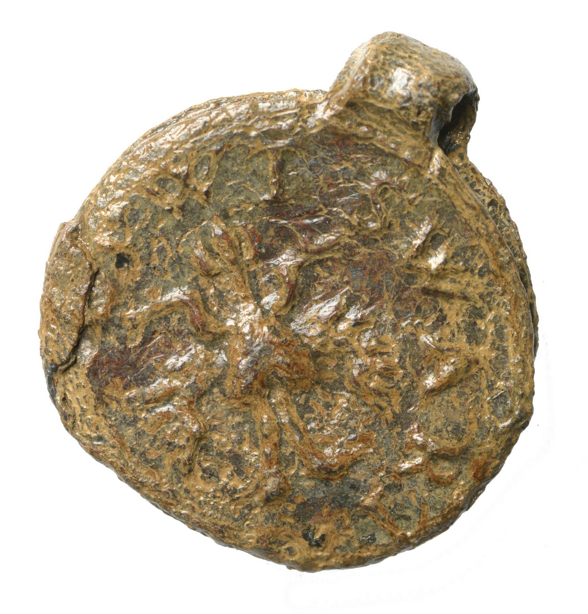 Textiellood, deelbewerkerslood; v.z: dubbelkoppige adelaar met hart en randtekst SWART; kz.: wapen van Amsterdam