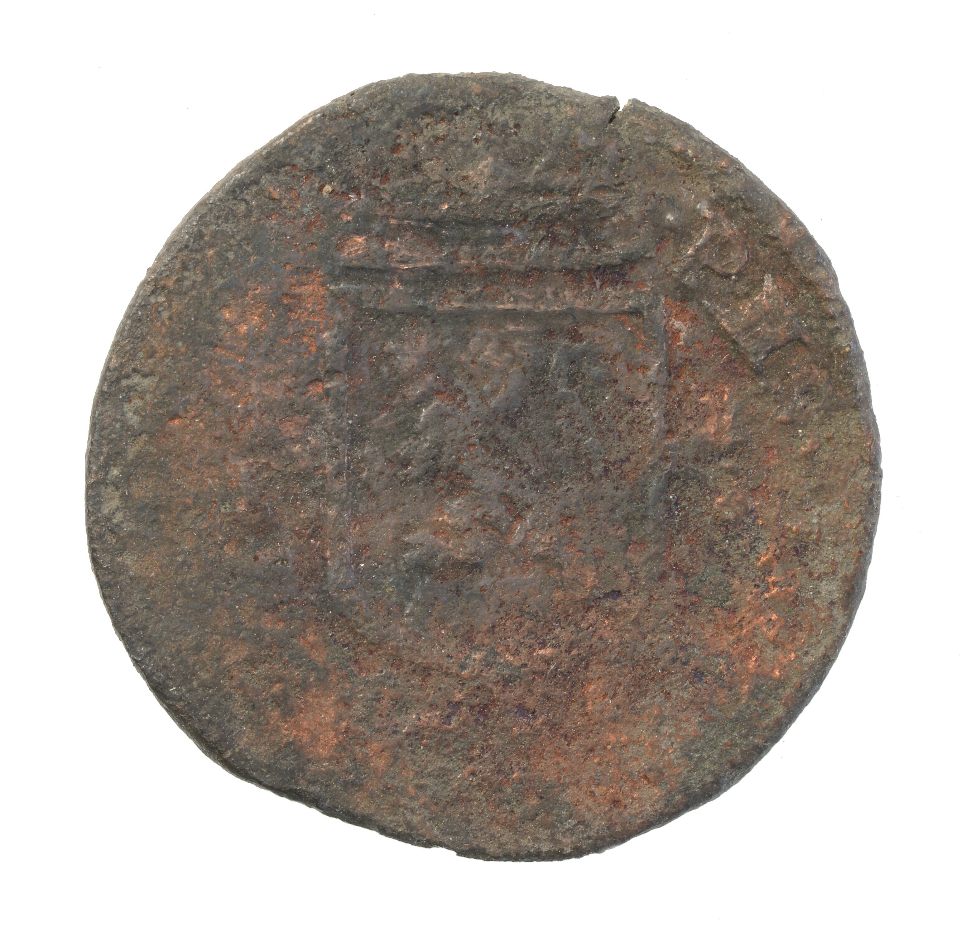 Oord; Holland Graafschap (1049-1581); Philips II (1555-1581); vz.: Gekroond wapenschild met leeuw naar links, gelegen op een stokkenkruis en randtekst .PHS. D:G. COMES. HOL .Z. .ZEL. en onleesbaar jaartal.; kz.: De Hollandse maagd zittende in een gesloten tuin. Zij wijst met haar rechterhand naar een zonnige hemel als teken van het vertrouwen op de Heer ...