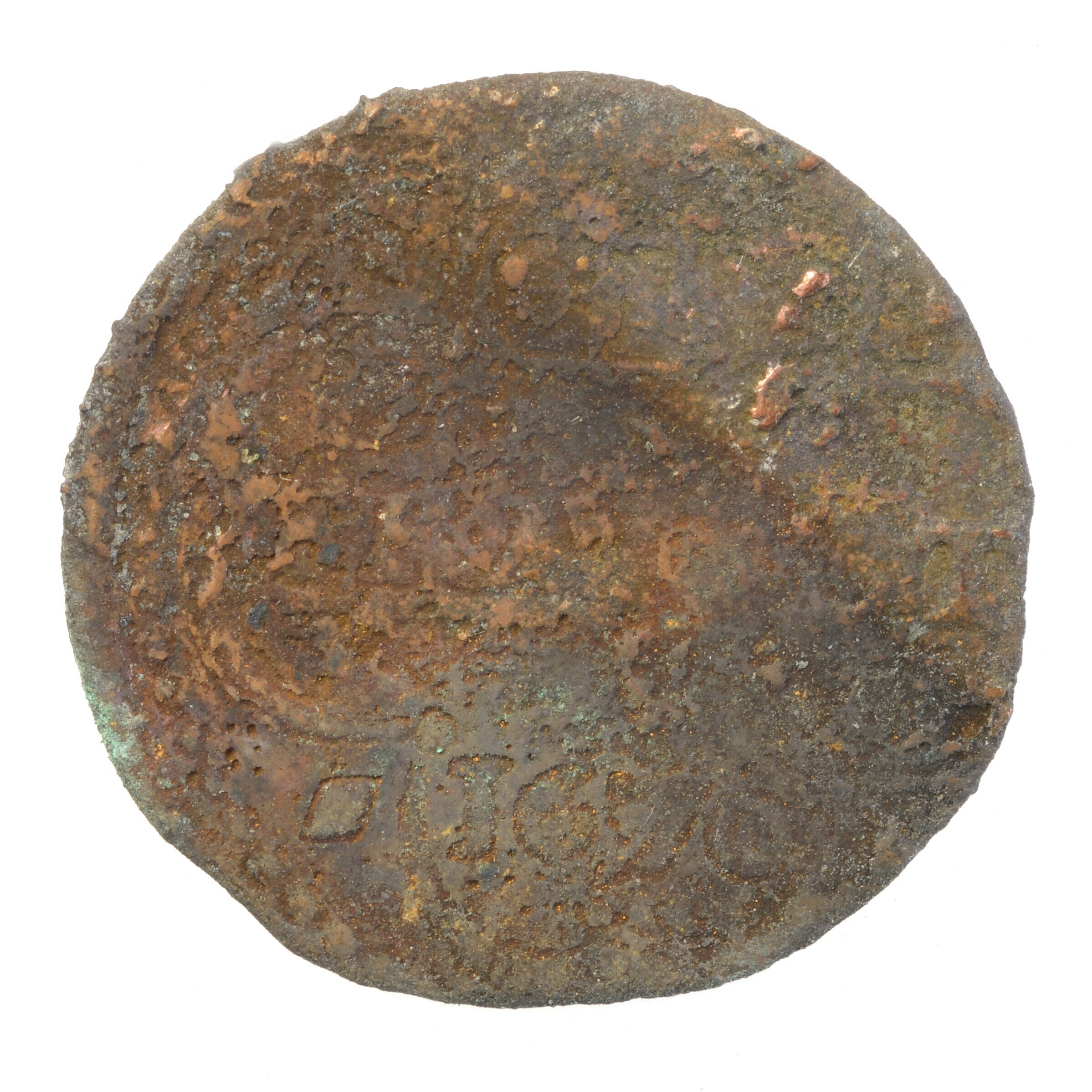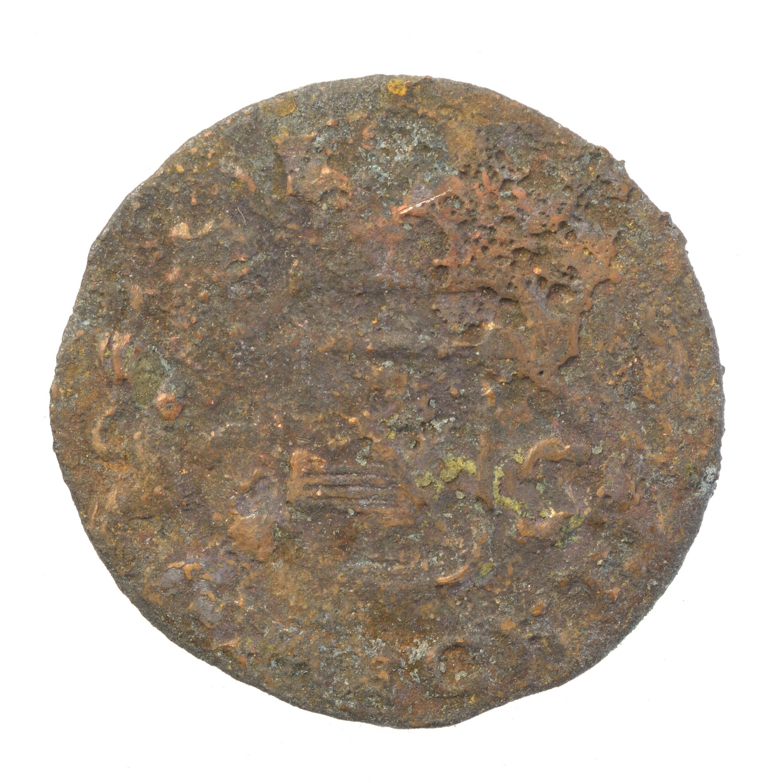 Duit; Utrecht Stad (1581-1795); vz.: Een versiering van vier bogen (vierpas) met daarin de tekst CIV TRAIECT in 2 regels en daaronder het jaartal 1670; kz.: Het stadswapen van Utrecht aan weerszijden vastgehouden door leeuwen. De lelie boven het wapen is komen te vervallen maar er staat wel een kroon boven. In het kwartier linksonder ...