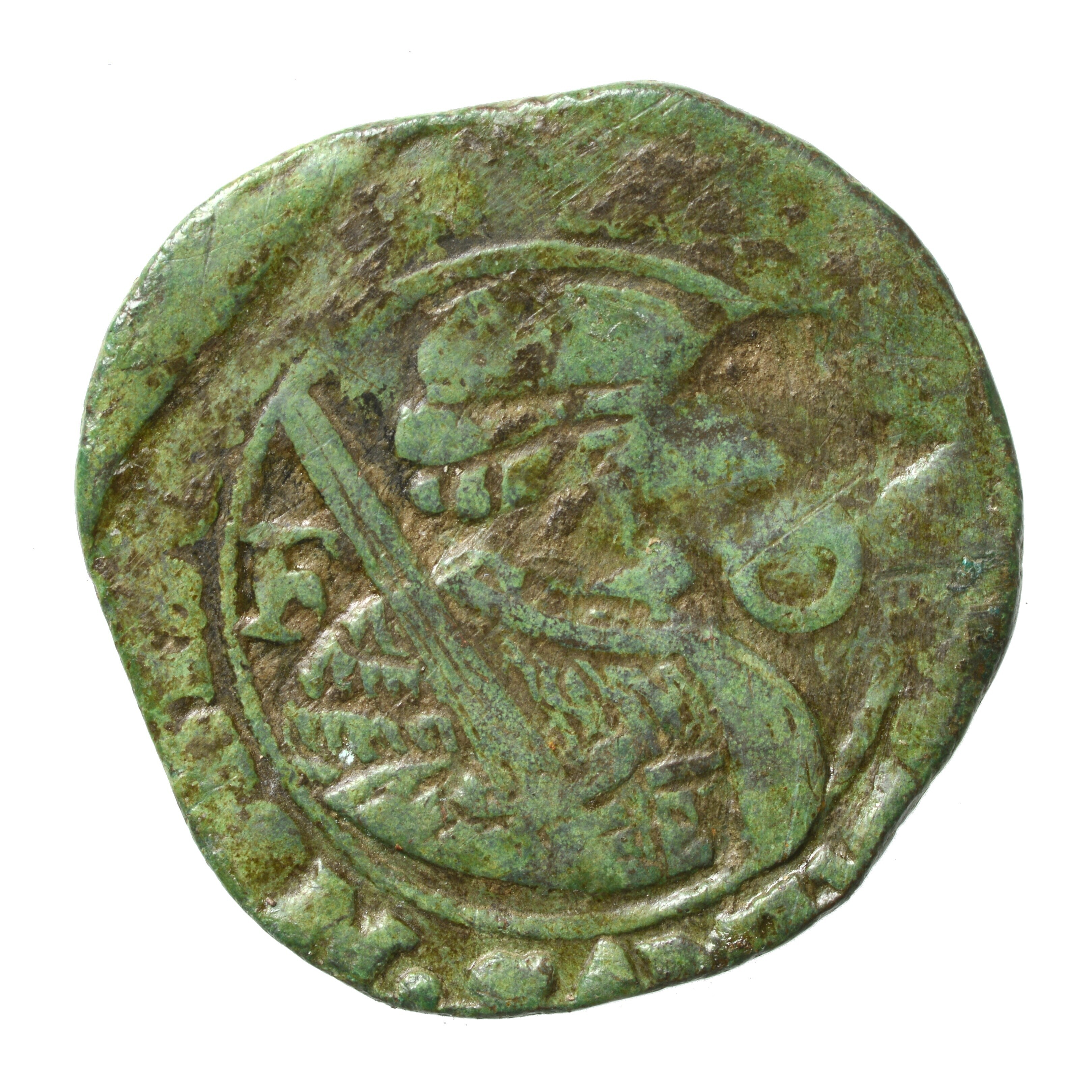 Oord; Friesland Provincie (1581-1795); vz.: Friese edelman (naar Saksisch voorbeeld) naar rechts met zwaard over de schouder. Links van het borstbeeld staat de letter F en rechts de letter O; kz.: Fries wapenschild met een open kroon en een ronde onderzijde. De bovenzijde van het wapen is nu gewoon recht zonder uitstulpingen. In het wapen ...