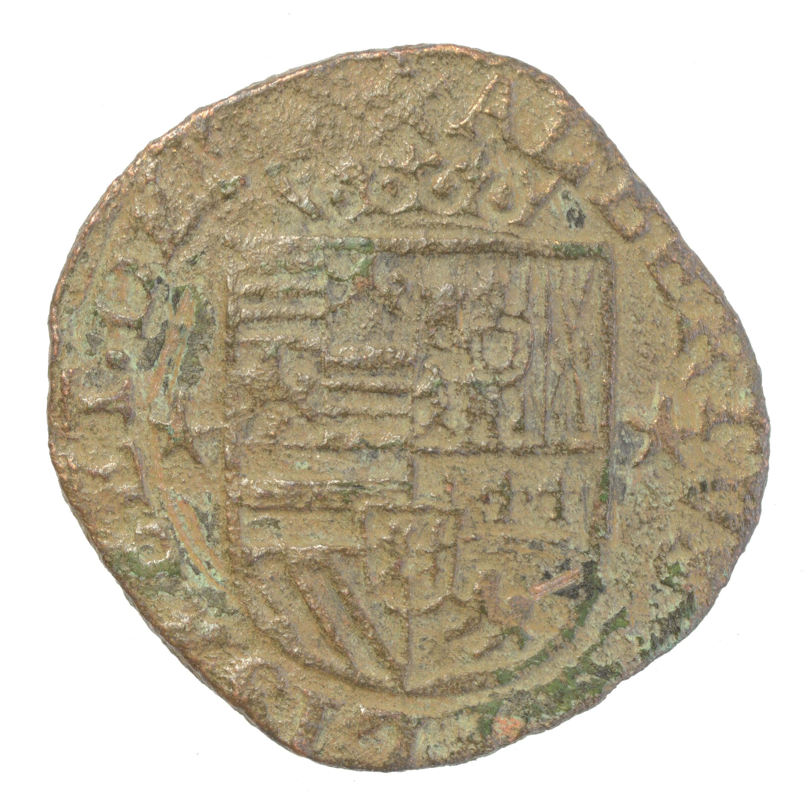 Oord Brabant; Albert en Isabella (1598-1621); vz.: Gekroond Bourgondisch wapenschild met meerdere kwartieren en randtekst ALBERTVS. ET. ELISABET. DG; kz.: Schuin geplaatst stokkenkruis welke door een vuurijzer is heen gestoken. Aan het vuurijzer hangt de keten van de orde van het gulden vlies en aan weerszijden het jaartal 1614. Randtekst: ARCHID. AVST. DVC. BVRG ET. ...