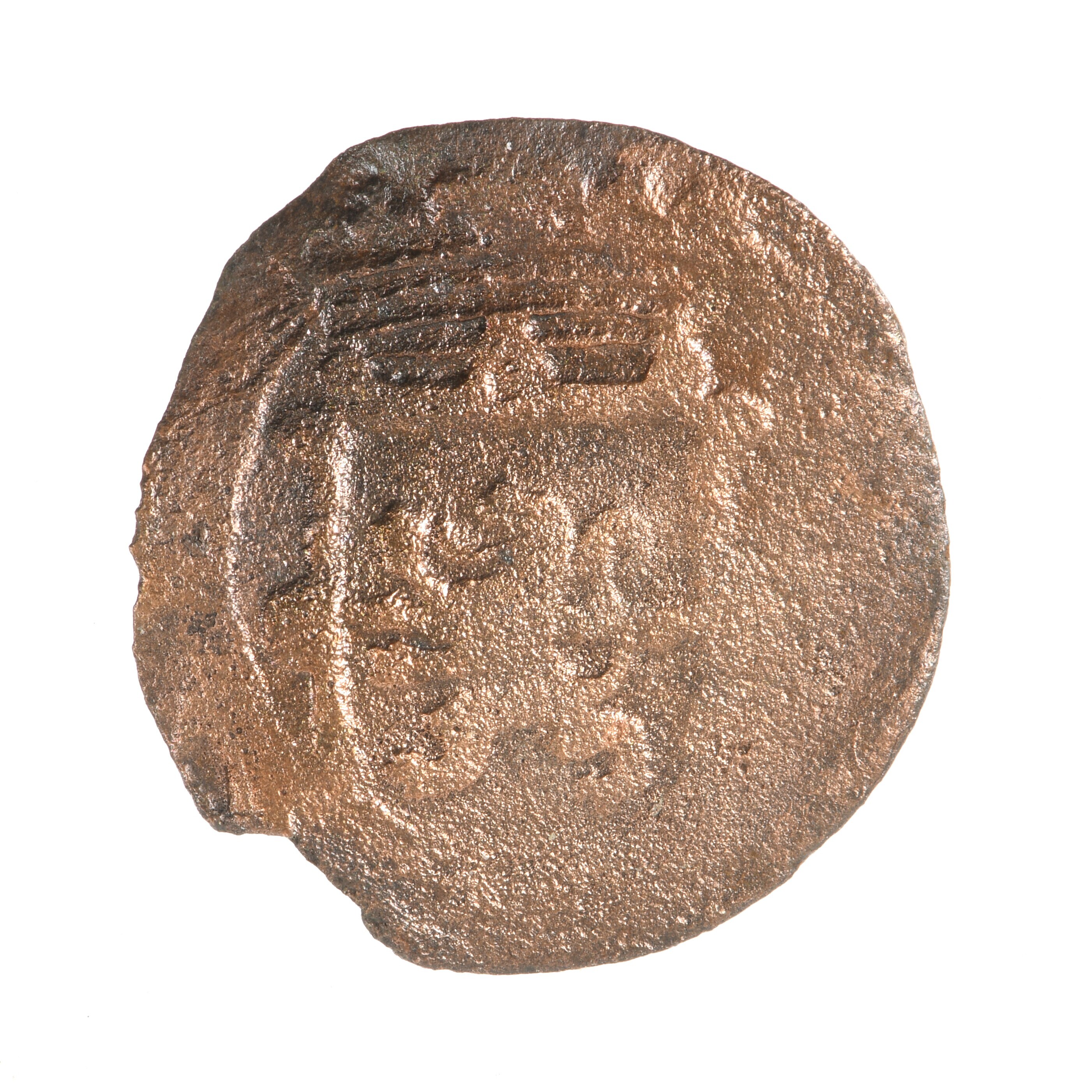Duit; Overijssel Provincie (1581-1795); vz.: tulpkrans met opschrift in vier regels [T]R^AS / ISVLA / •NIA• / 1628; kz.: gekroond en versierd wapenschild van Overijssel in een tulpkrans; muntplaats: Kampen; gewicht: 1.18 gram