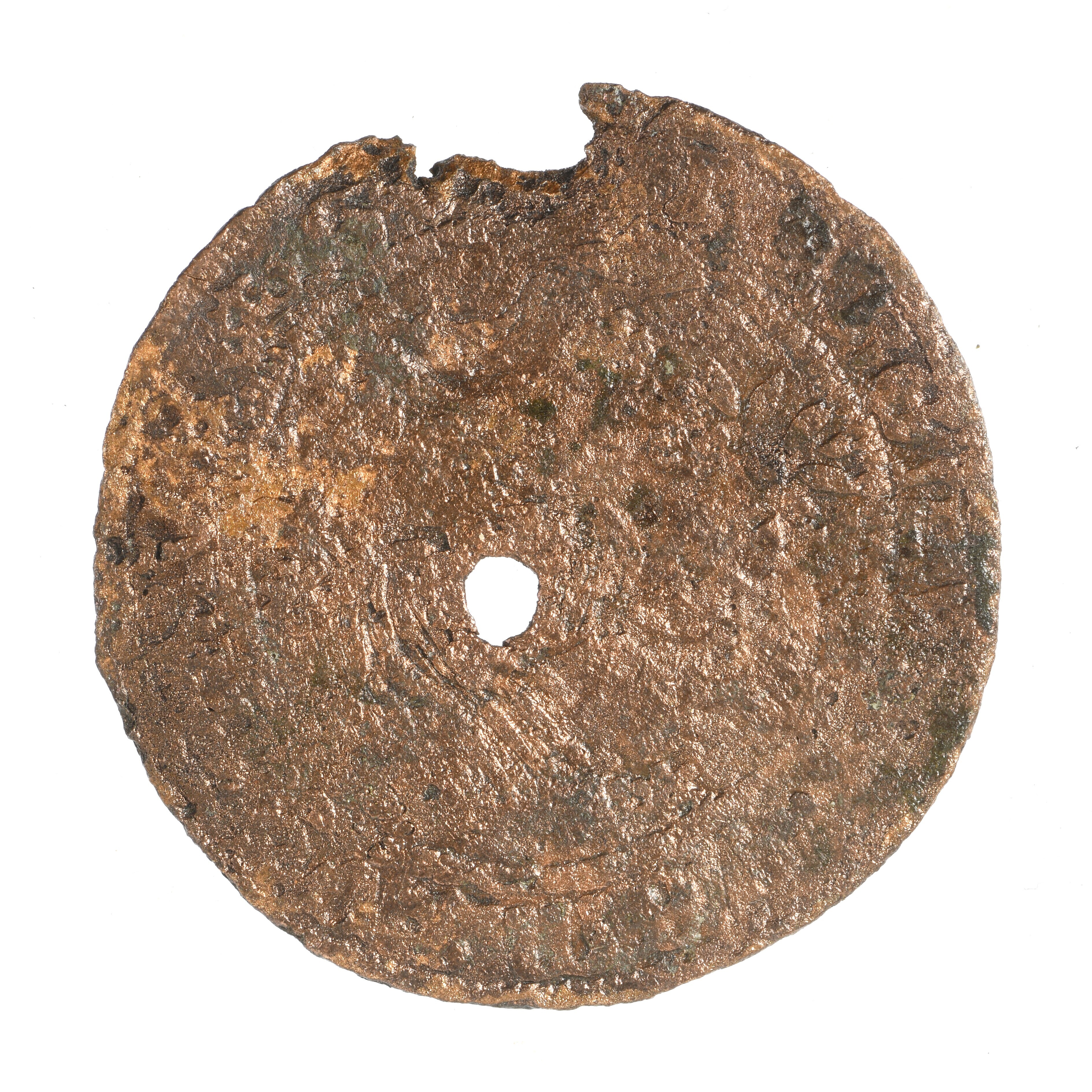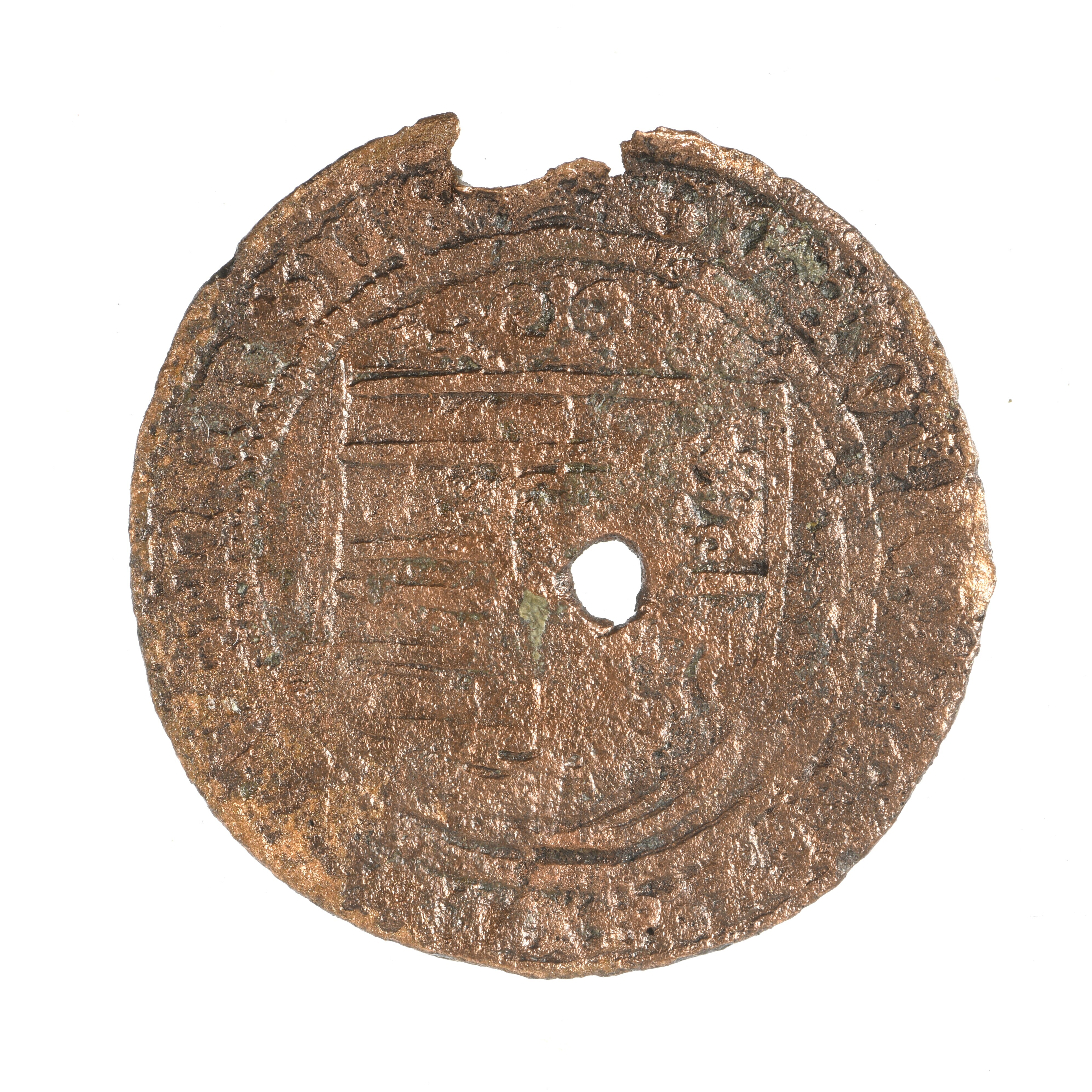 Rekenpenning; imitatie Venuspenning; vz.: naar rechts gewende Venus met schaamdoek, in linkerhand een chantepleure en langs de rand pseudotekst; kz.: rond wapenschild met verticale strepen in twee linker kwadranten, drie franse lelies in kwadrant rechtsboven en leeuw in kwadrant rechtsonder (lijkende op het wapenschild van Philips de Schone), en langs de rand pseudotekst; gewicht: 3.82 ...