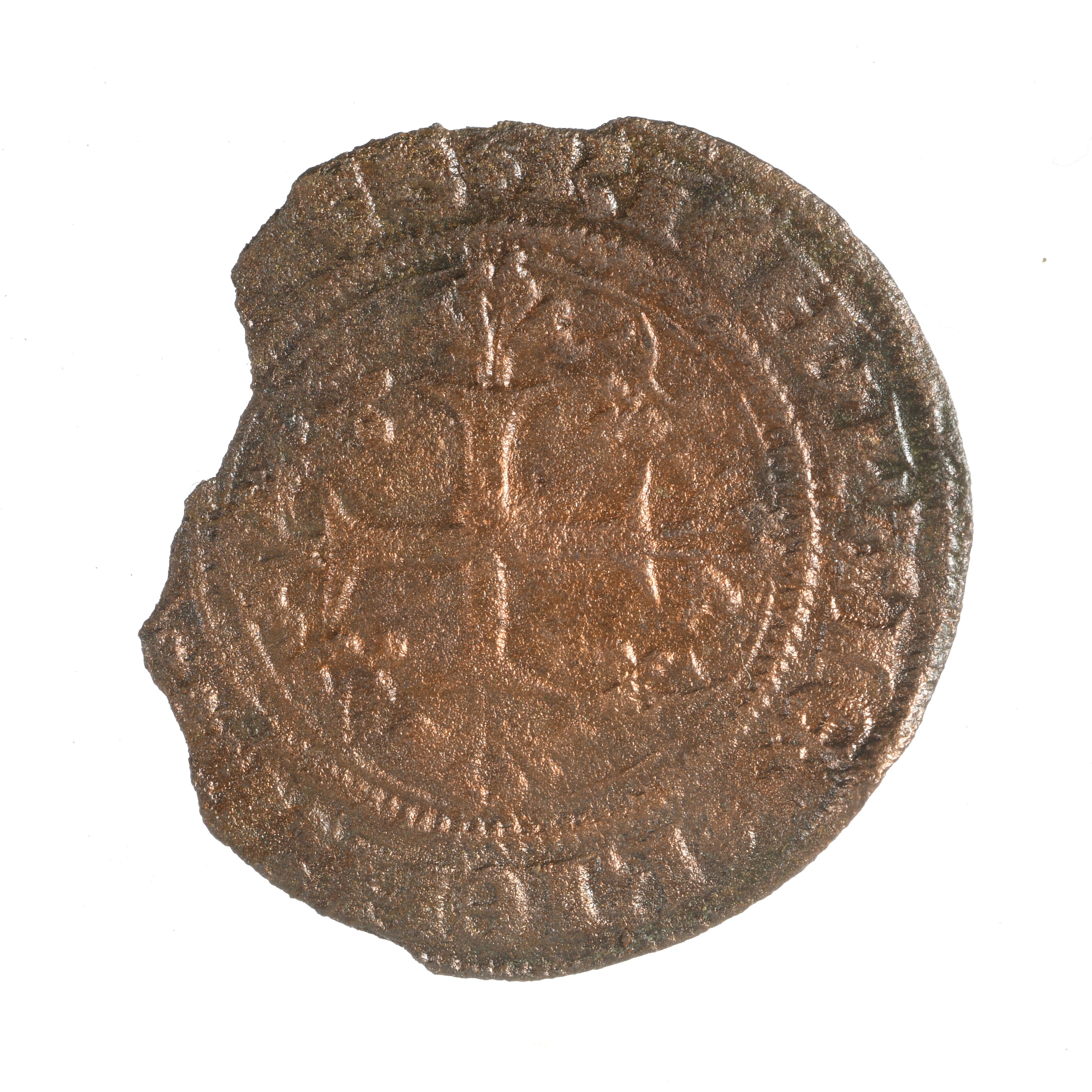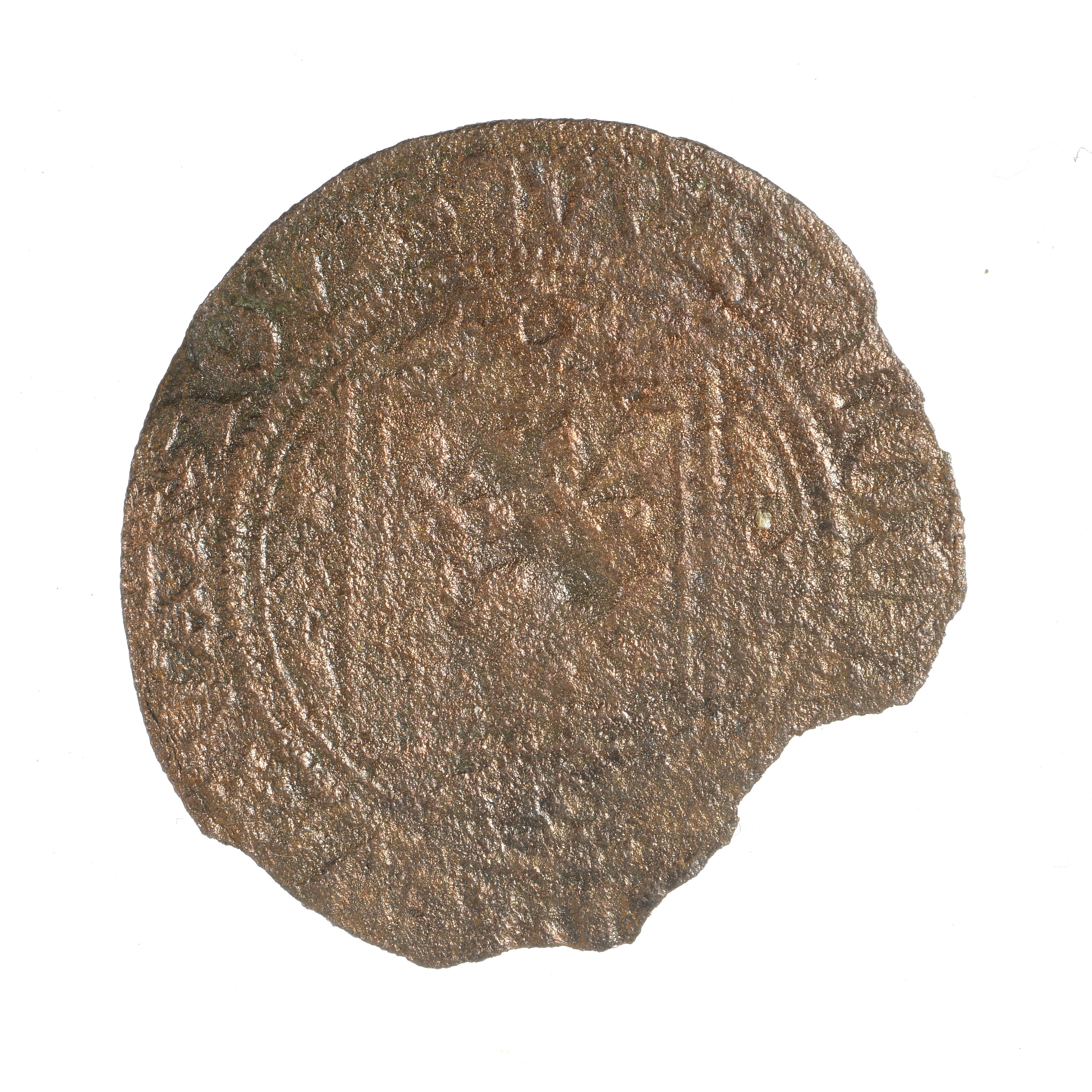 Rekenpenning; vz.: centraal kruis met bladversiering en omschrift [+GETT]ES.BIEN.PAIES.BIEN; kz.: vier lelies binnen ruit met bladversiering eromheen en met grotendeels onleesbaar omschrift ROG [...] VAT.TOV [...] VV [...]; herkomst: Frankrijk; gewicht: 1.73 gram