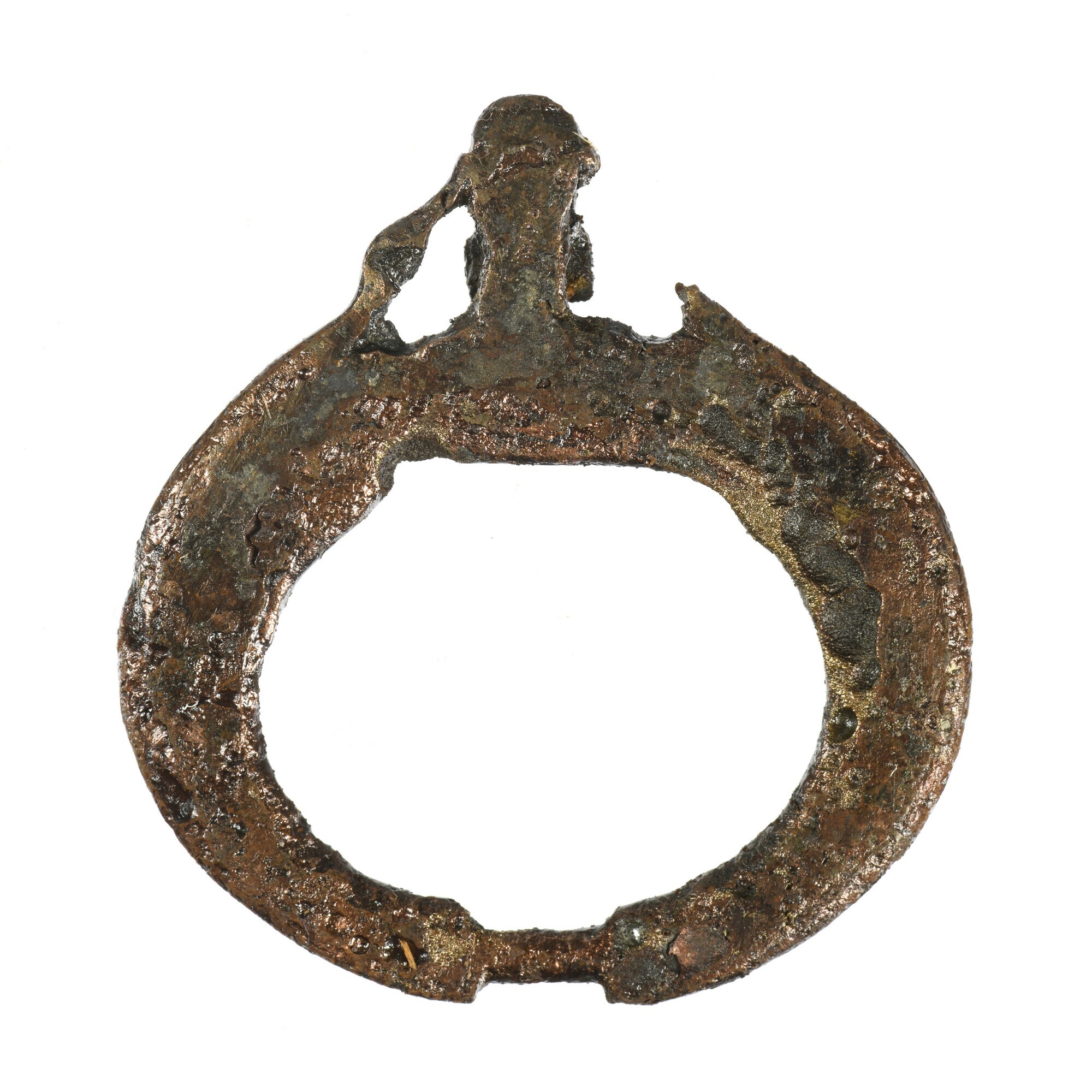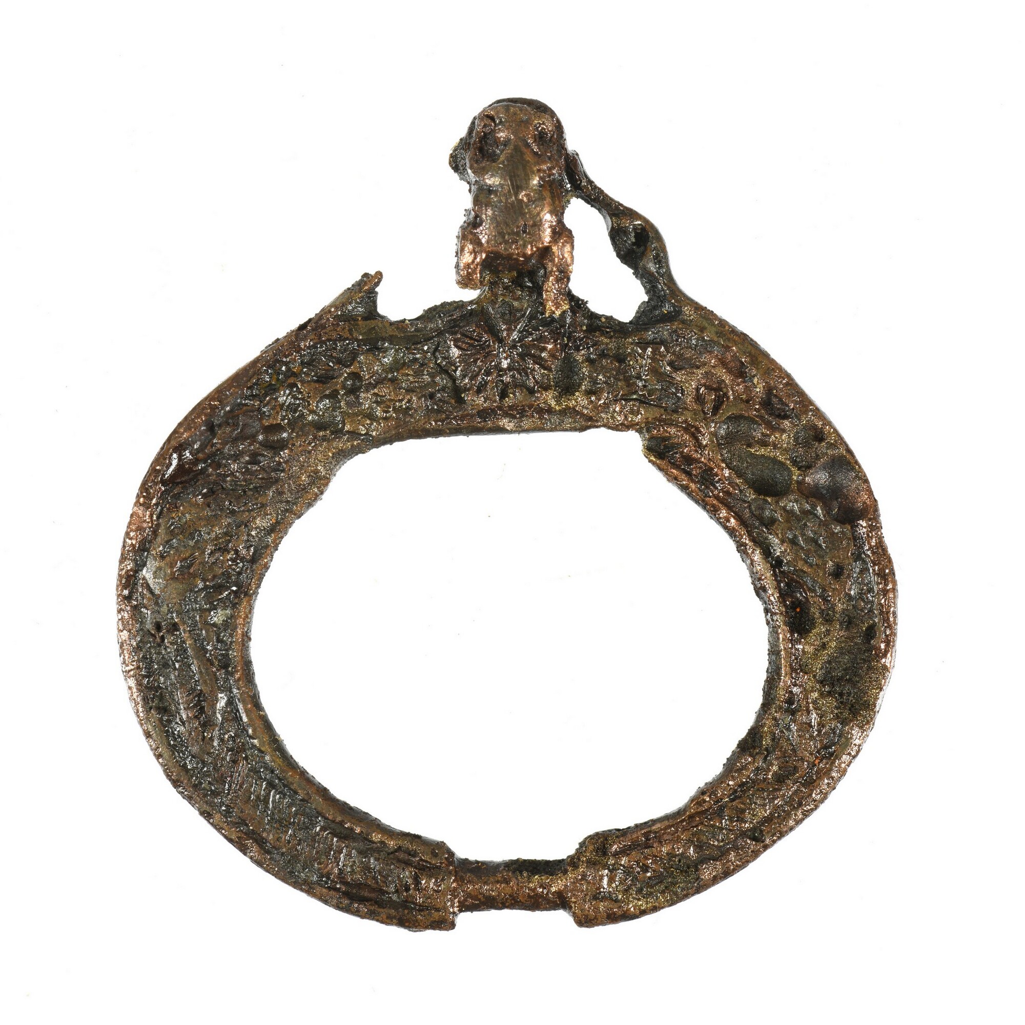 Gesp; vz.: versierd, slechts enkele strepen te onderscheiden; angel ontbreekt