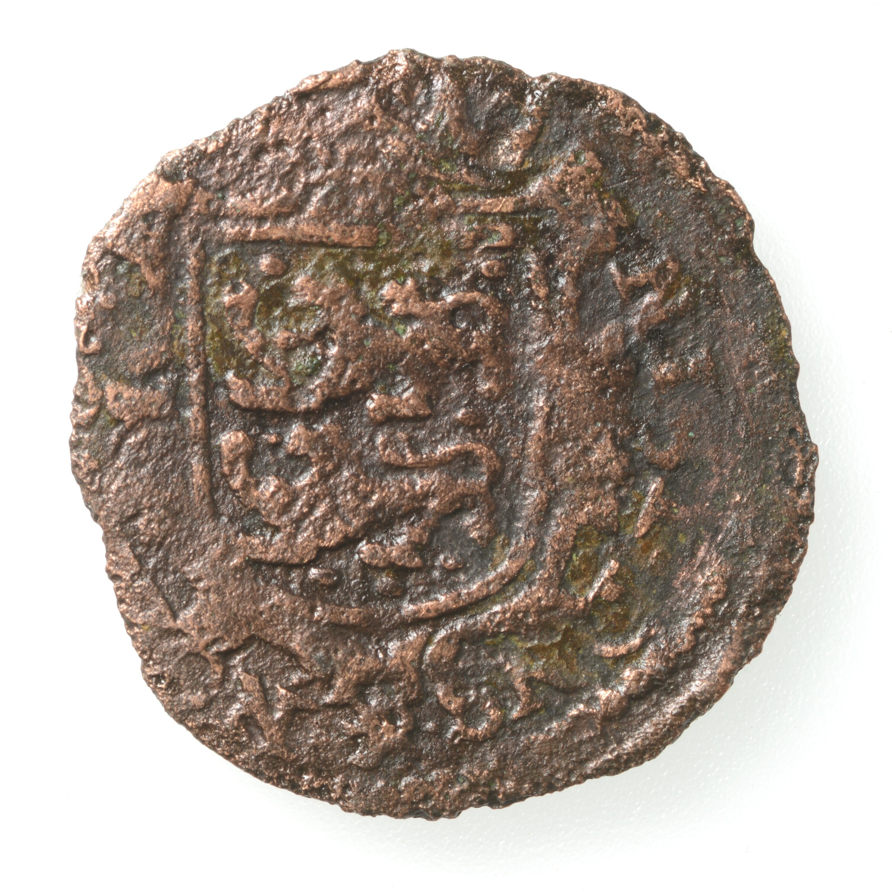 Duit; Friesland Provincie (1581-1795); vz.: tulpkrans met daarin de tekst FRI SIA in twee regels met daaronder het jaartal 1620; kz.: Gekroond wapen van Friesland met twee gaande leeuwen boven elkaar. Het wapen heeft kleine versieringen aan de rand en loopt onderin enigszins in een puntje uit en randtekst NISI. DNS. NOBISCV. ; gewicht: 1.30 ...