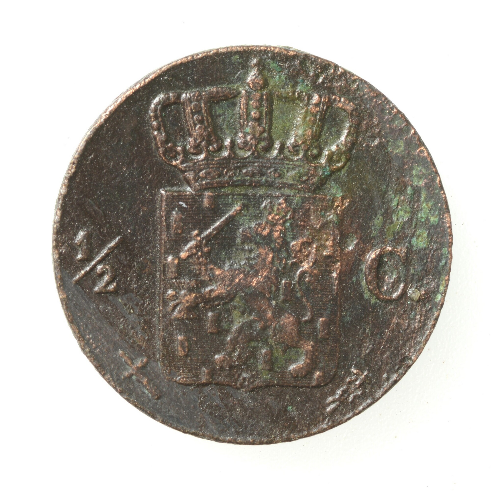 1/2 Cent; Nederland Koninkrijk (1813-heden); Willem III (1849-1890); vz.: gekroonde W tussen 18 en 57; kz.: gekroond Nederlands wapen tussen ½ en C; gewicht: 1.82 gram