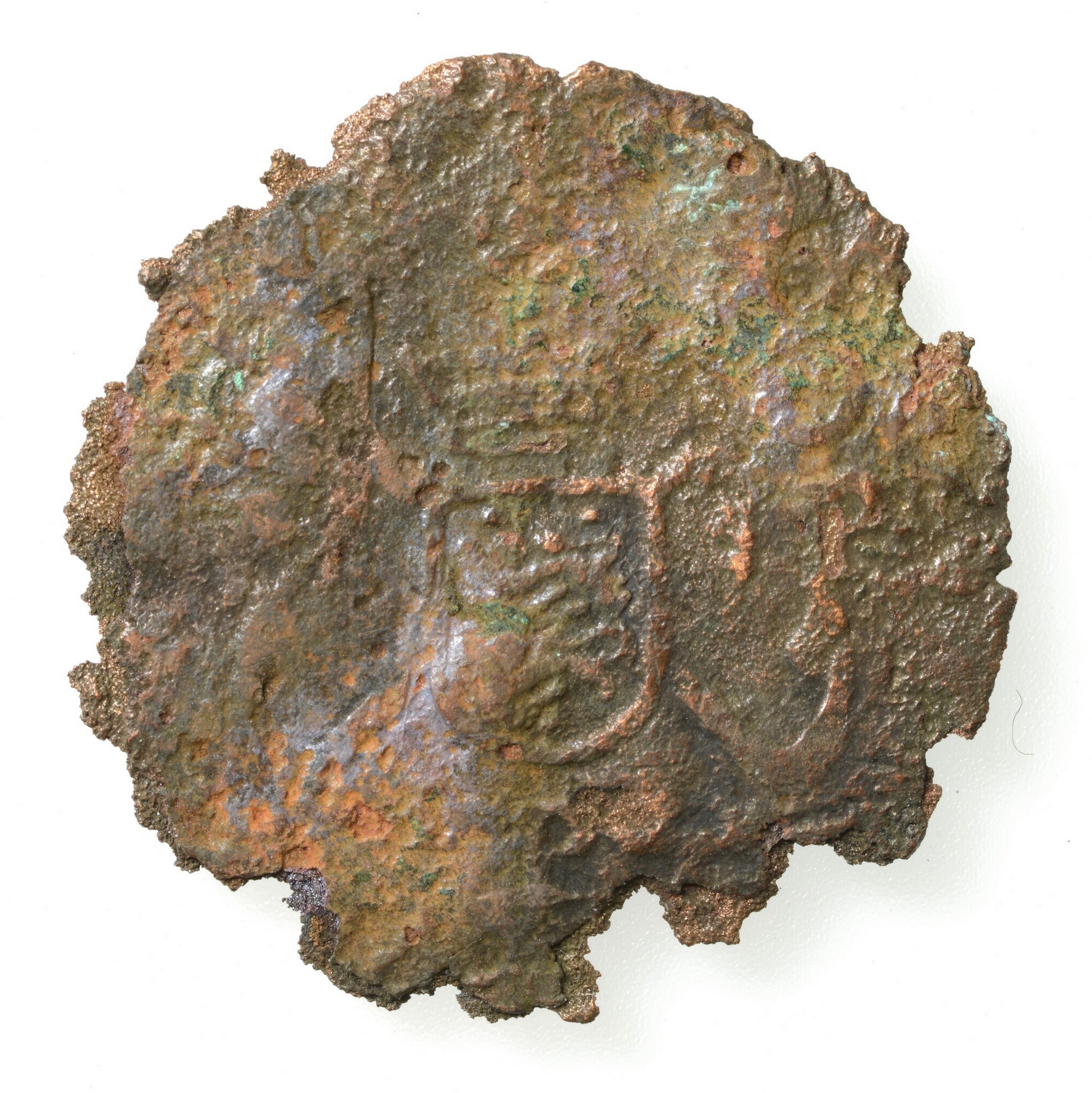 Penning; scheepvaartpenning West-Friesland; vz.: binnen een cirkel, het admiraliteitswapen van West-Friesland met PPP (PVGNO PRO PATRIA). Omschrift binnen cirkel: SACRA.ANCHORA.CHRISTVS+; kz.: binnen een cirkel, zeven regelige tekst: .+. QVI.NAVIGAT. / MARE.NARRANT. / PERICVLVM.EIVS. / QVOD.AVDIENTES. / AVRIB’.NOSTRIS. / ADMIRAMVR. / MDCXVIII; gewicht: 2.67 gram; Ref: v. Loon I.503