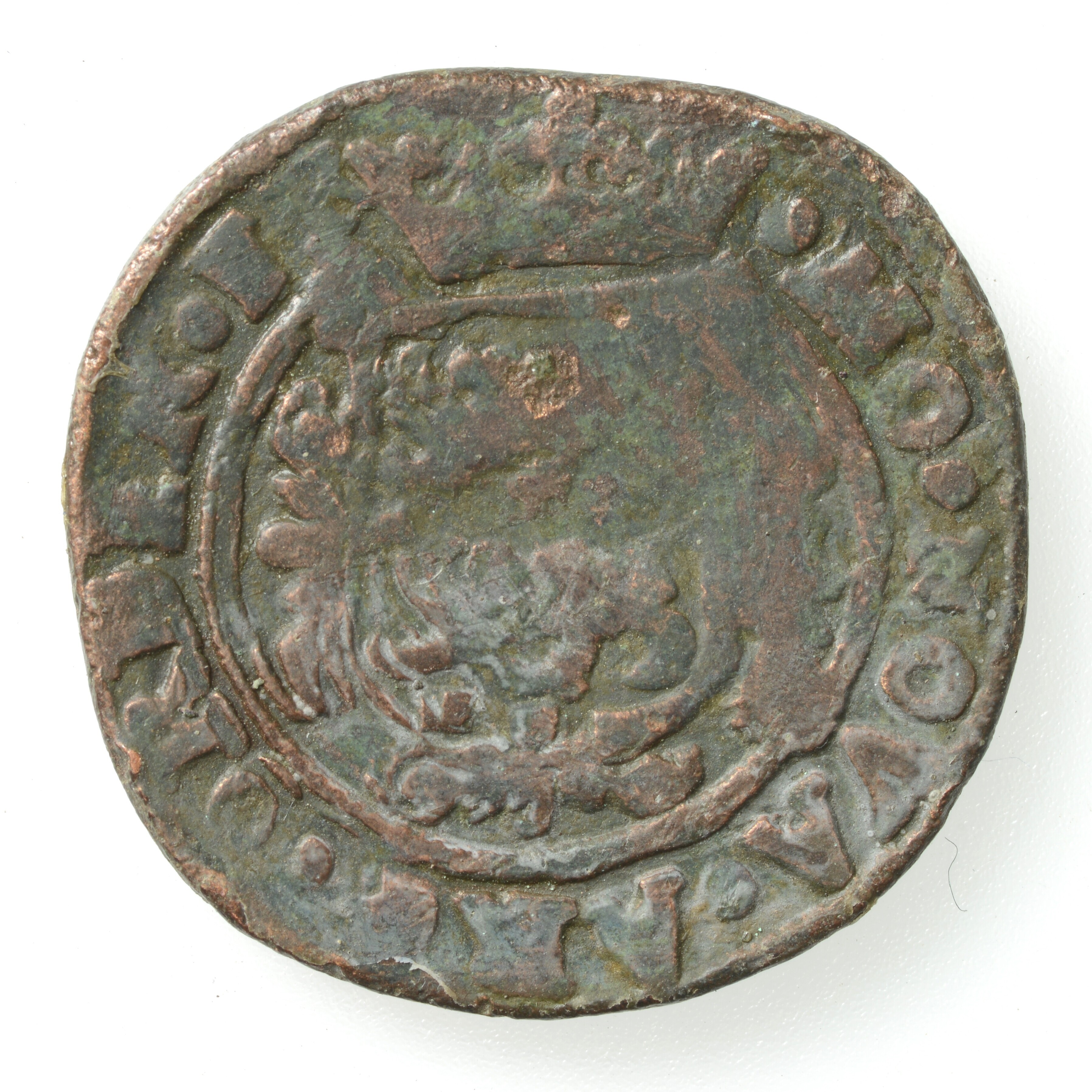 Oord; Friesland Provincie (1581-1795); vz.: Friese edelman (naar Saksisch voorbeeld) naar rechts met zwaard over de schouder. Links van het borstbeeld staat de letter F en rechts de letter O. Deze afkorting wordt uitgelegd als Frisia Ordines (Friese staat) maar ook als Friese oord en randtekst NISI. DOMINVS. NOBISCVM.; kz.: Fries wapenschild met een parelkroon ...
