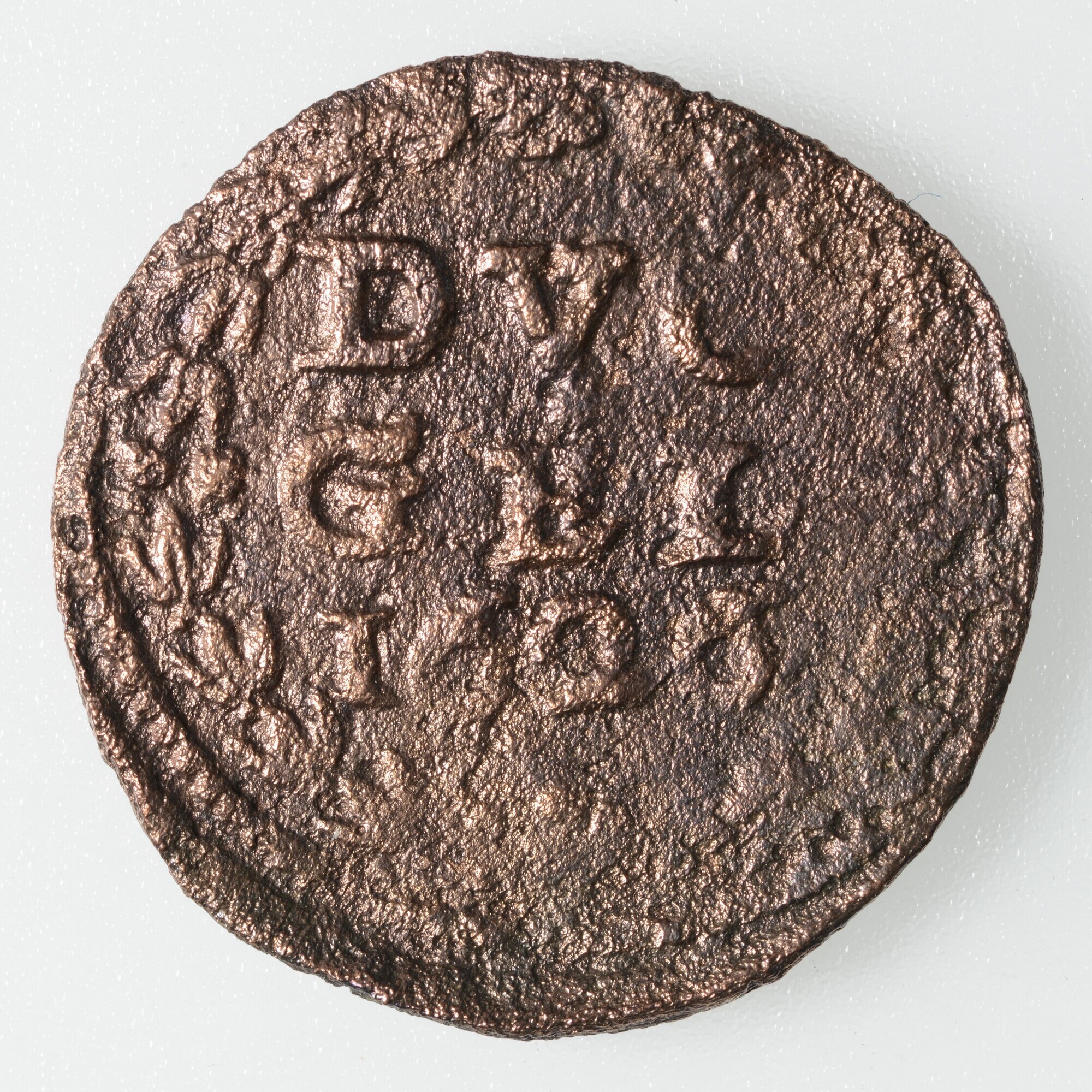 Duit; Gelderland Provincie (1581-1795); vz.: tulpkrans met daarin de tekst DVC GEL in twee regels en daaronder het jaartal 1626; kz.: Wapen van Gelderland welke wordt omgeven door een veelbogige versiering, randtekst onleesbaar; gewicht: 1.55 gram