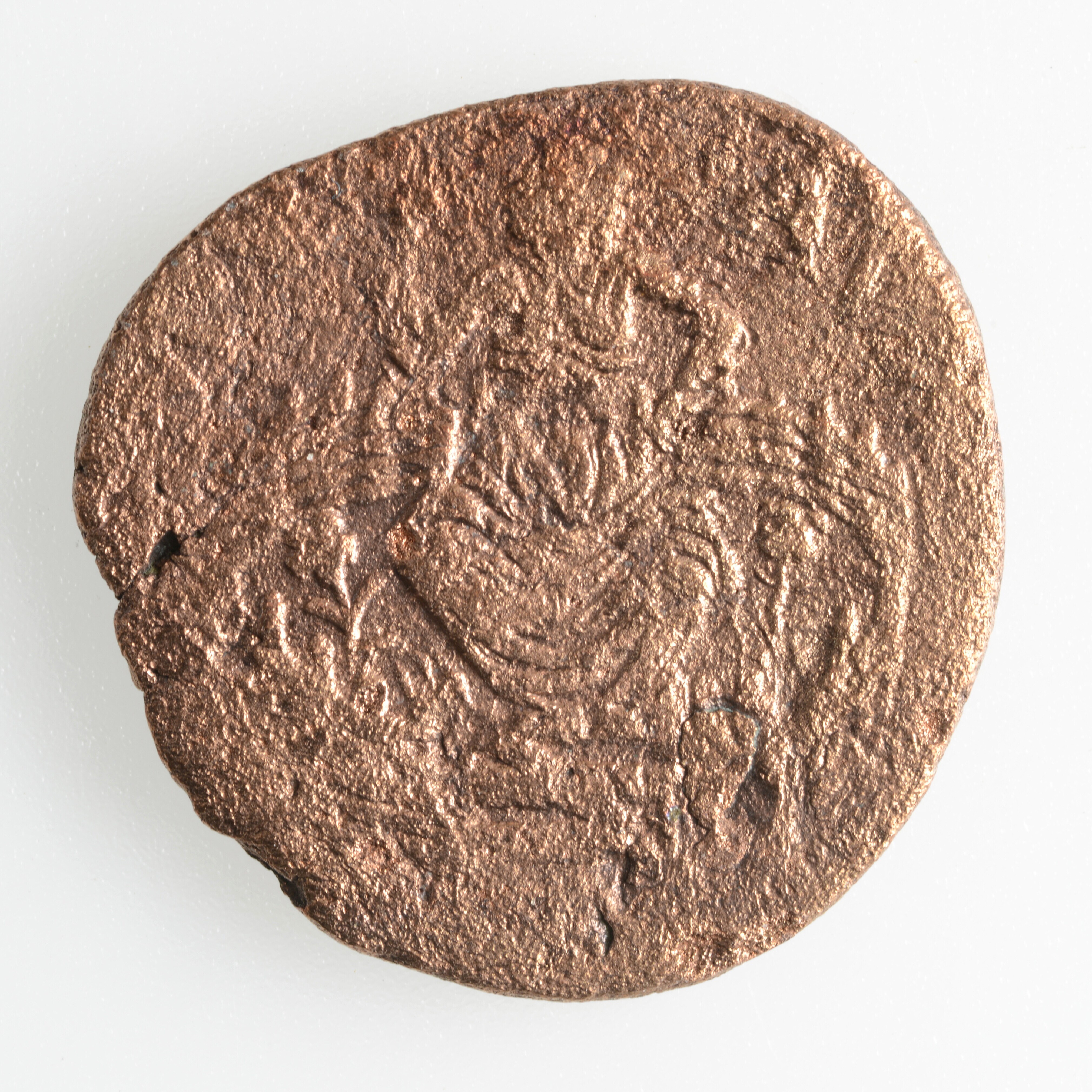 Duit; Holland Provincie (1581-1795); vz.: een tulpkrans met daarin de tekst HOL LAN DIA in drie regels; kz.: de Hollandse maagd zittende in een gesloten tuin. Zij wijst met haar rechterhand naar een zonnige hemel als teken van het vertrouwen op de Heer; gewicht: 3.51 gram