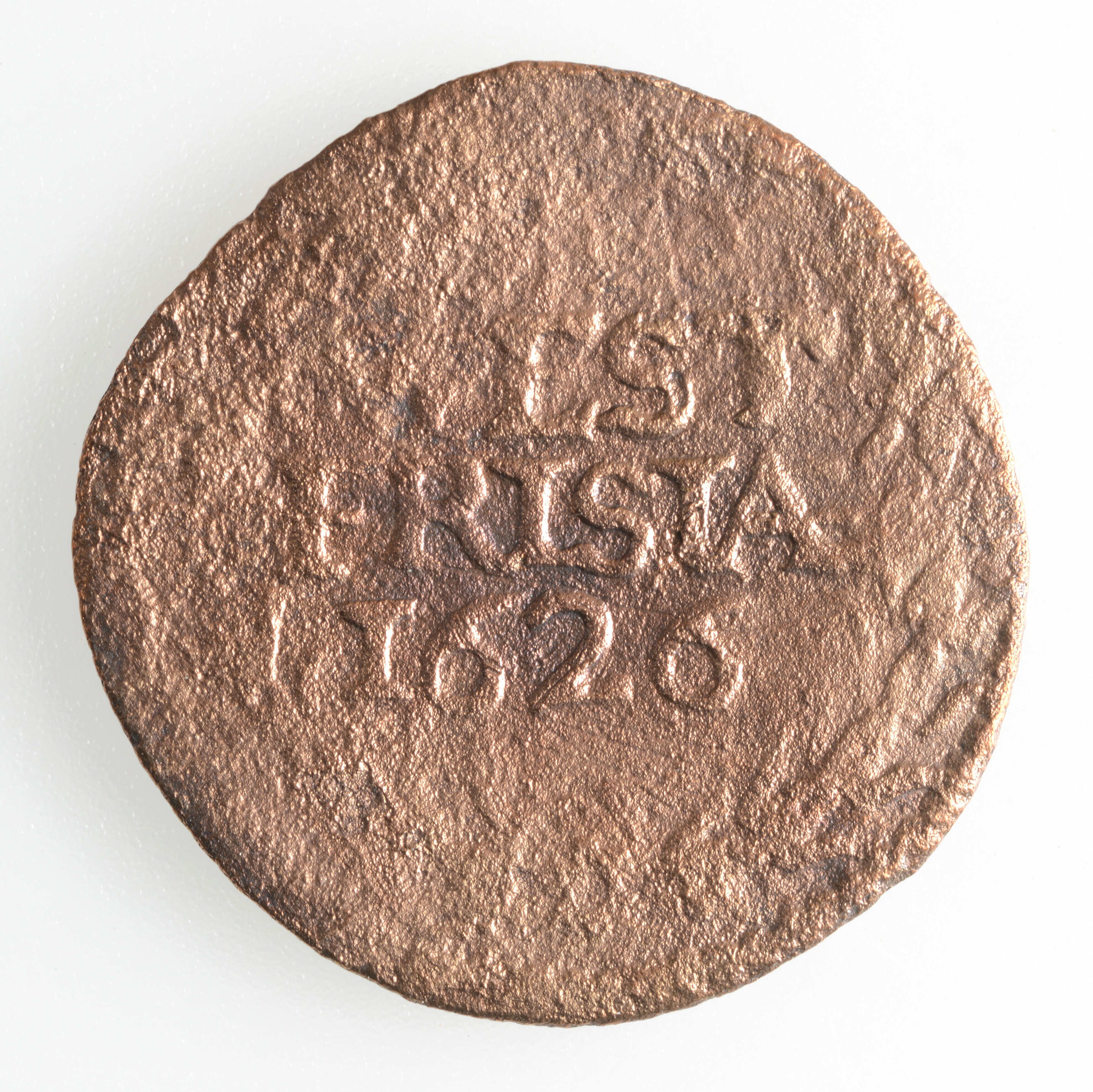 Duit West-Friesland; vz.: Een tulpkrans met daarin de tekst WEST FRISIAE in twee regels, daaronder het jaartal 1626; kz.: Gekroond wapenschild met het wapen van West-Friesland. De leeuwen hebben hun kop 'en face' gericht en randtekst DEVS. FORTI. ET. SP. NOS ; gewicht: 1.57 gram