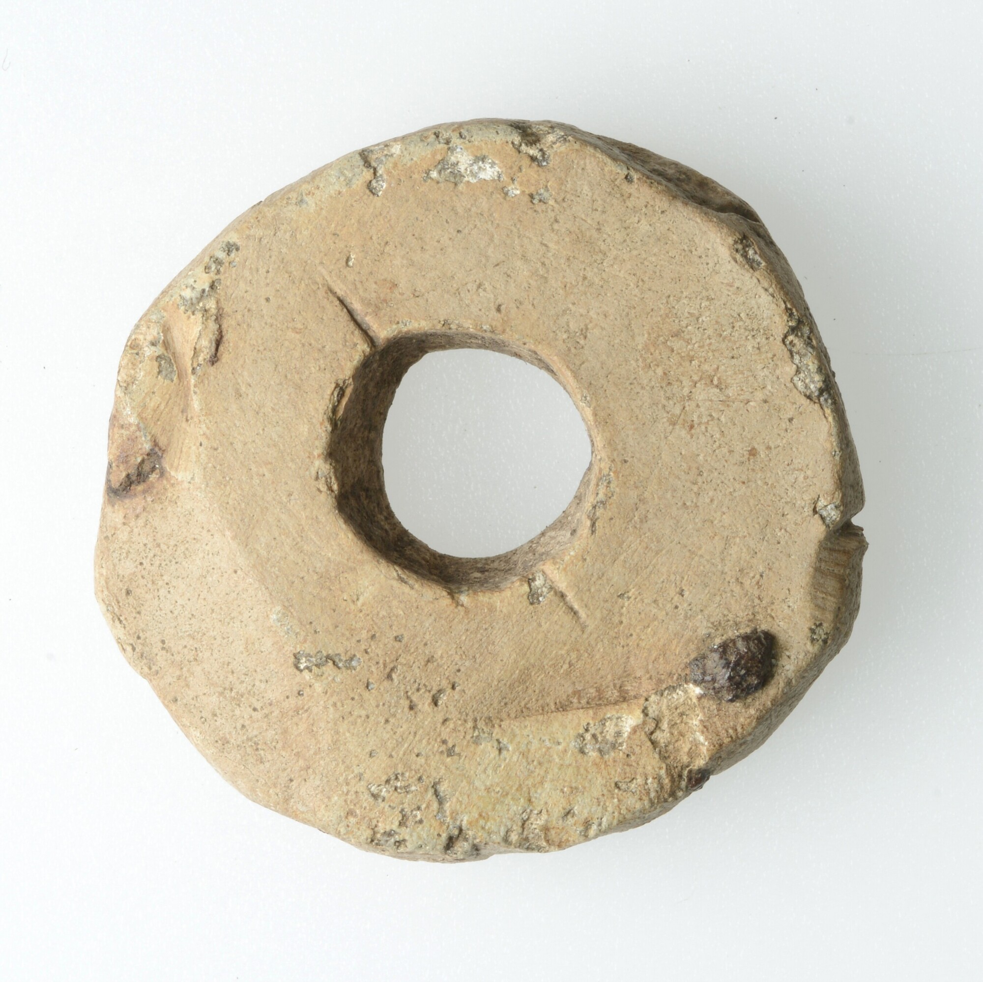 Spinsteen; ronde platte schijf met een gat in het midden en onversierd