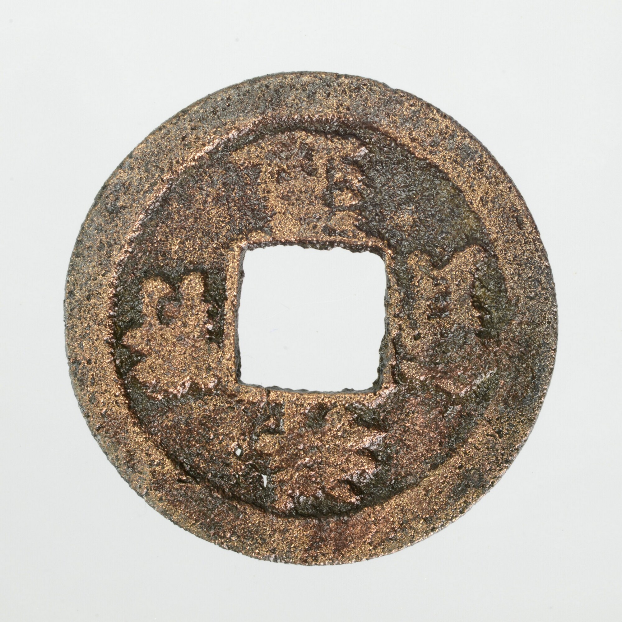 Cash; Noordelijke Songdynastie; Keizer Zhao Heng (997-1016); vz.: vier Chinese tekens (Tung Pao Hsiang Fu= goede munt van Hsiang Fu); kz.: blanco; vierkante doorboring; gewicht: 1.79 gram