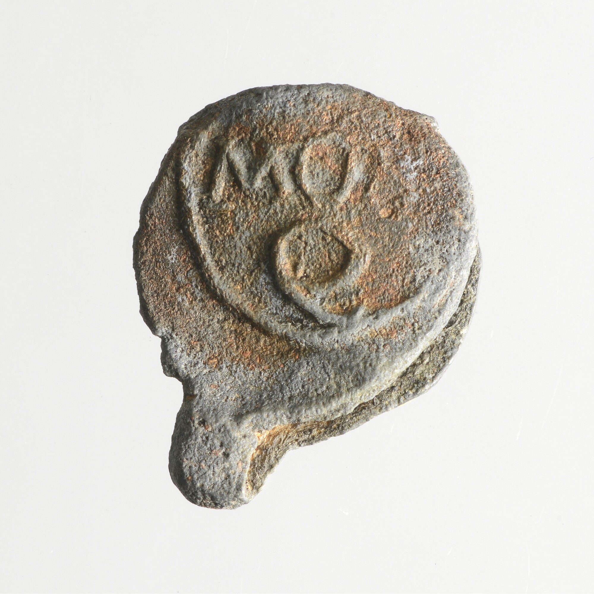 Textiellood; pb-tex; vz.: stadspoort; kz.: krul en tekst MON