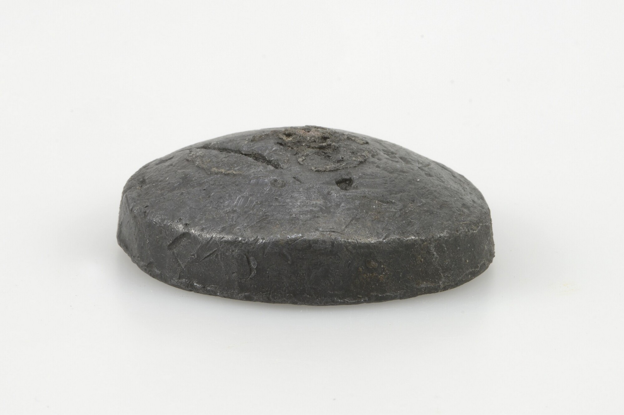 Gewicht; platte onderzijde en iets bolle bovenzijde; 566 gram