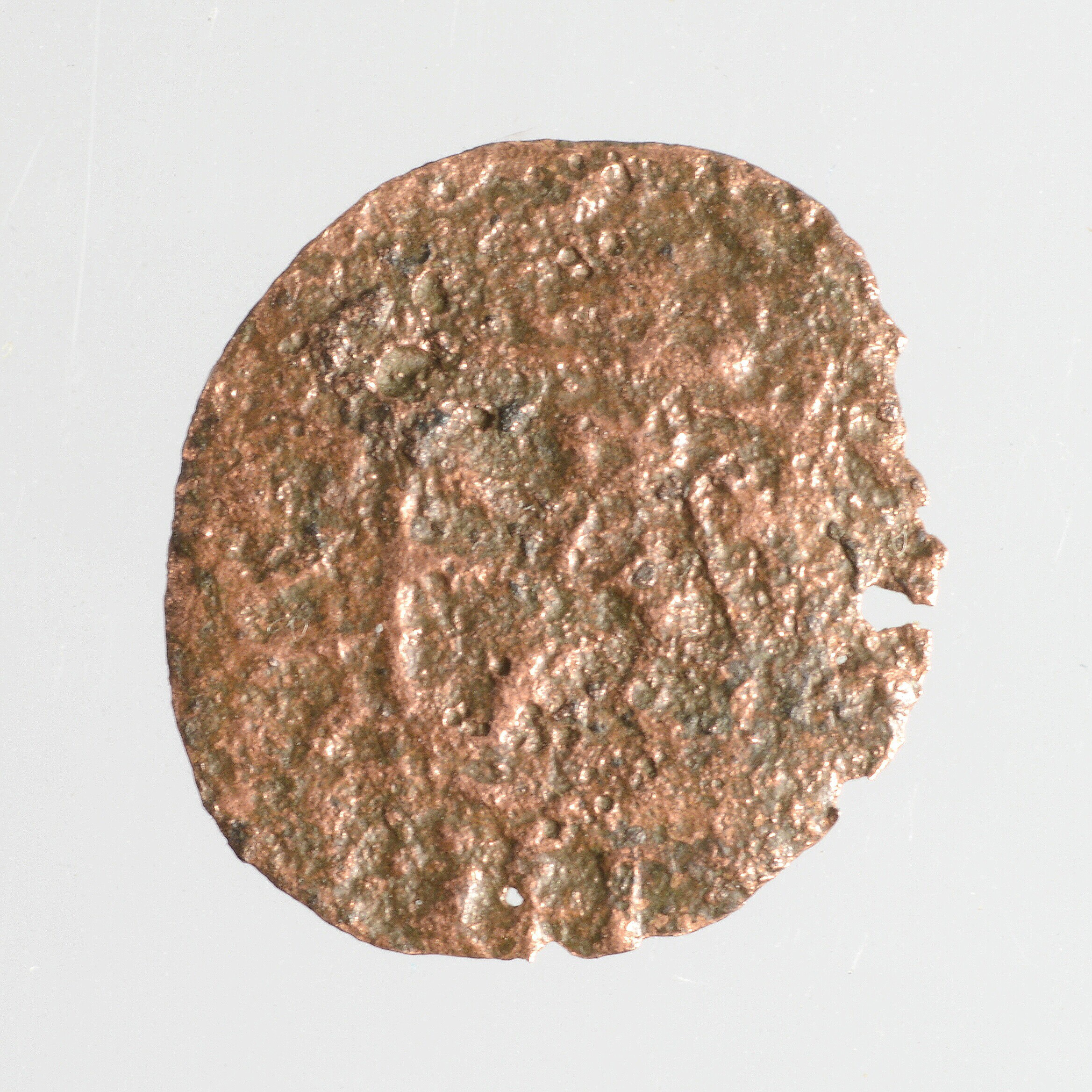 Hollandse penning; Philips II (1555-1598); vz.: gekroonde letter P binnen parelcirkel; kz.: gekroond wapenschild met klimmende leeuw naar links binnen parelcirkel; muntplaats: verschillende mogelijkheden; gewicht: 0.38 gram