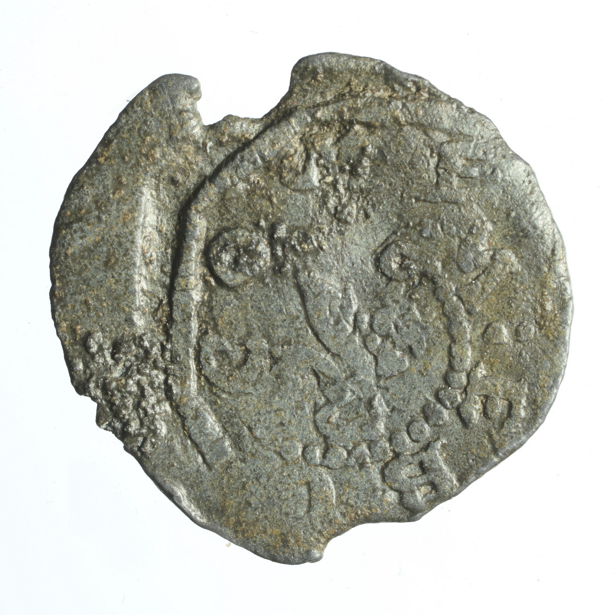 Textiellood; pb-tex; vz.: Franse lelie? met tekst COME.. en MEB..