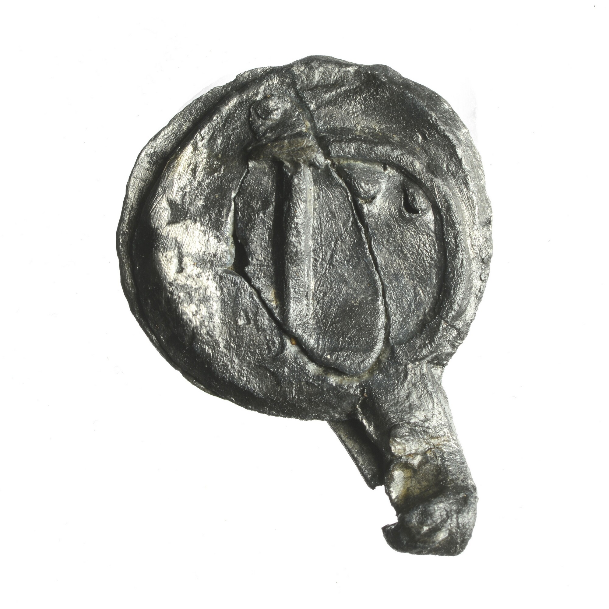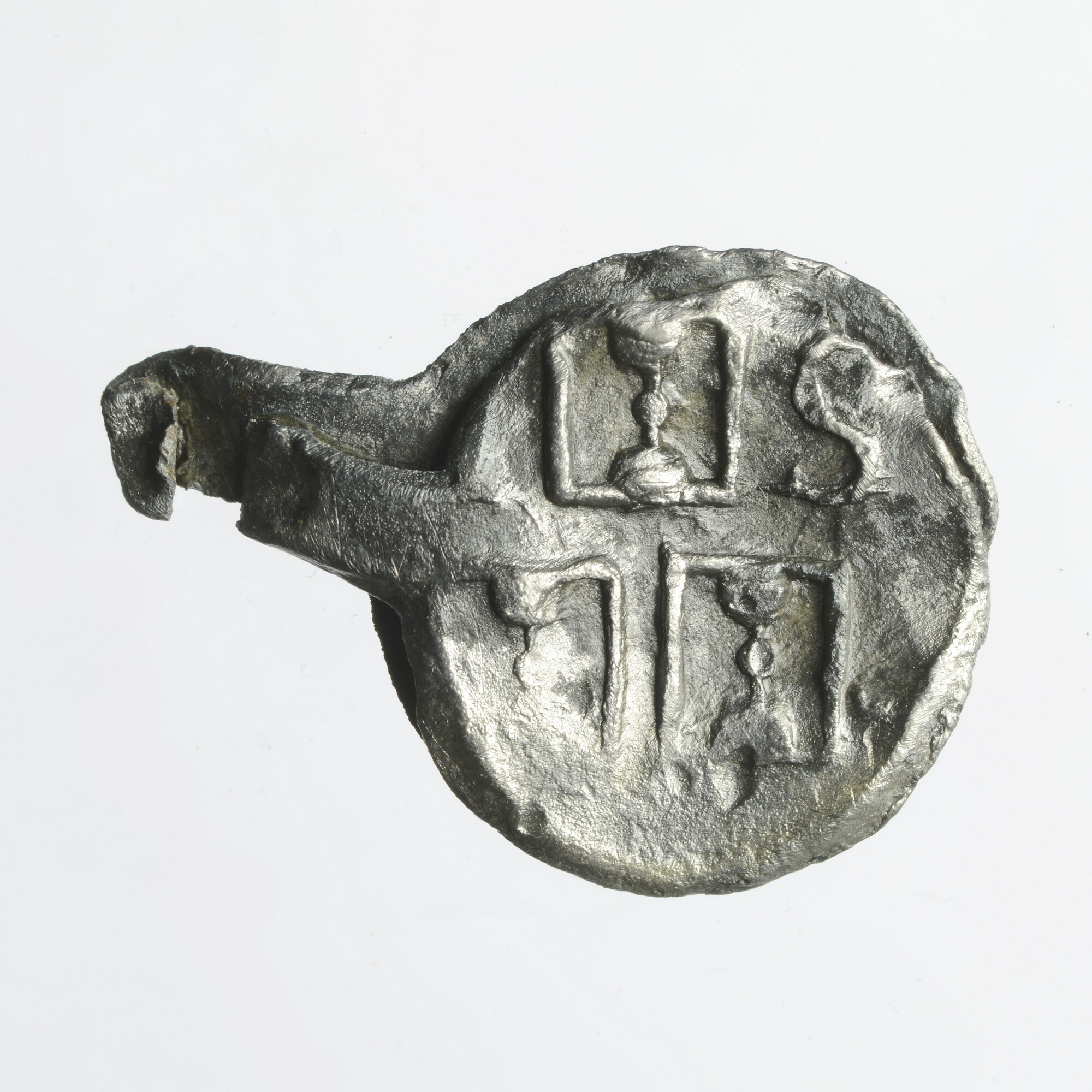 Haringnetlood; pb-tex; vz.: stadswapen Schiedam (drie zandlopers) en letter S(D); kz.: letter D; herkomst: Schiedam