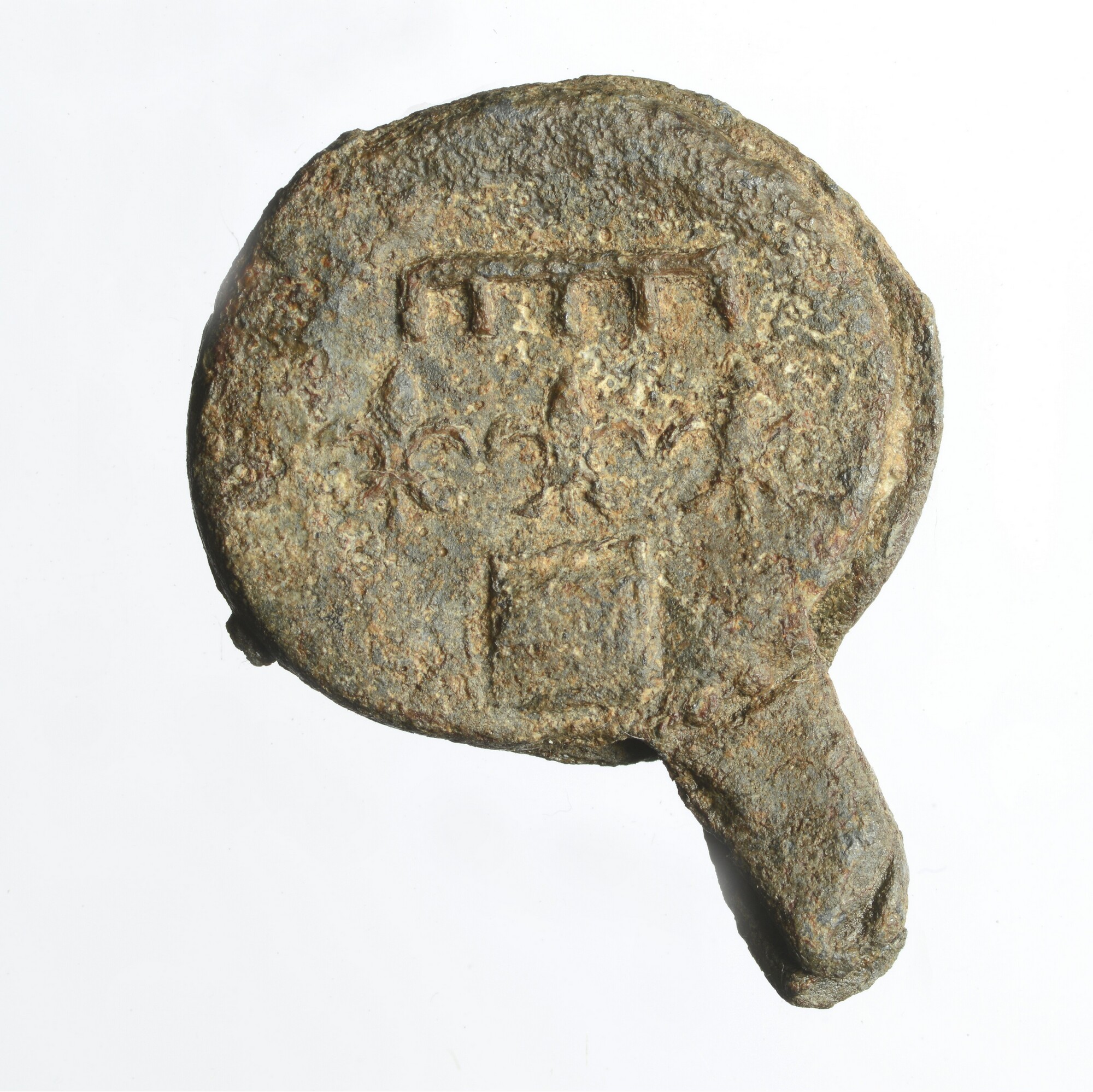 Haringnetlood; vz.: barensteel (heraldisch teken bestaande uit een balk met dwarsbalkjes), drie Franse lelies en een blokje; kz.: letter E; herkomst: Beverwijk