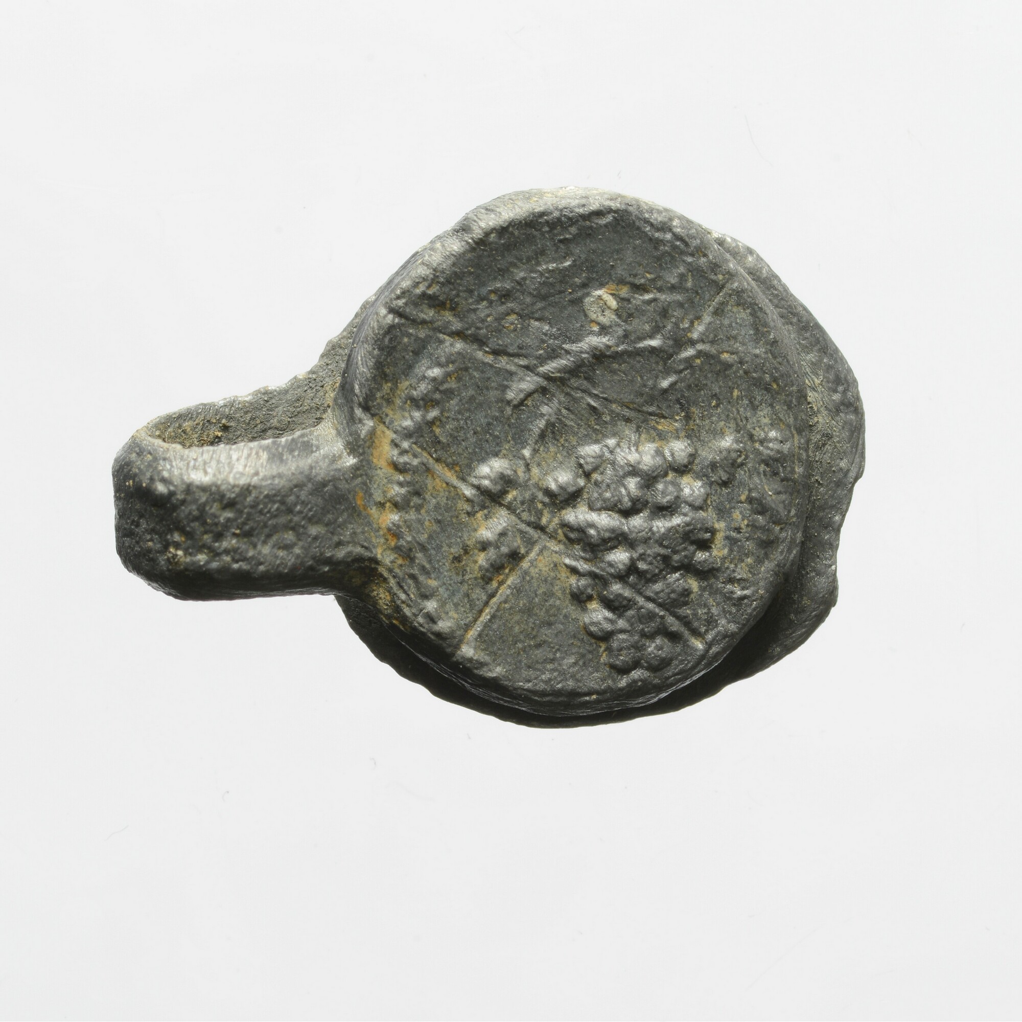 Textiellood; pb-tex; vz.: druiventros; kz.: letter A; herkomst: vermoedelijk Augsburg