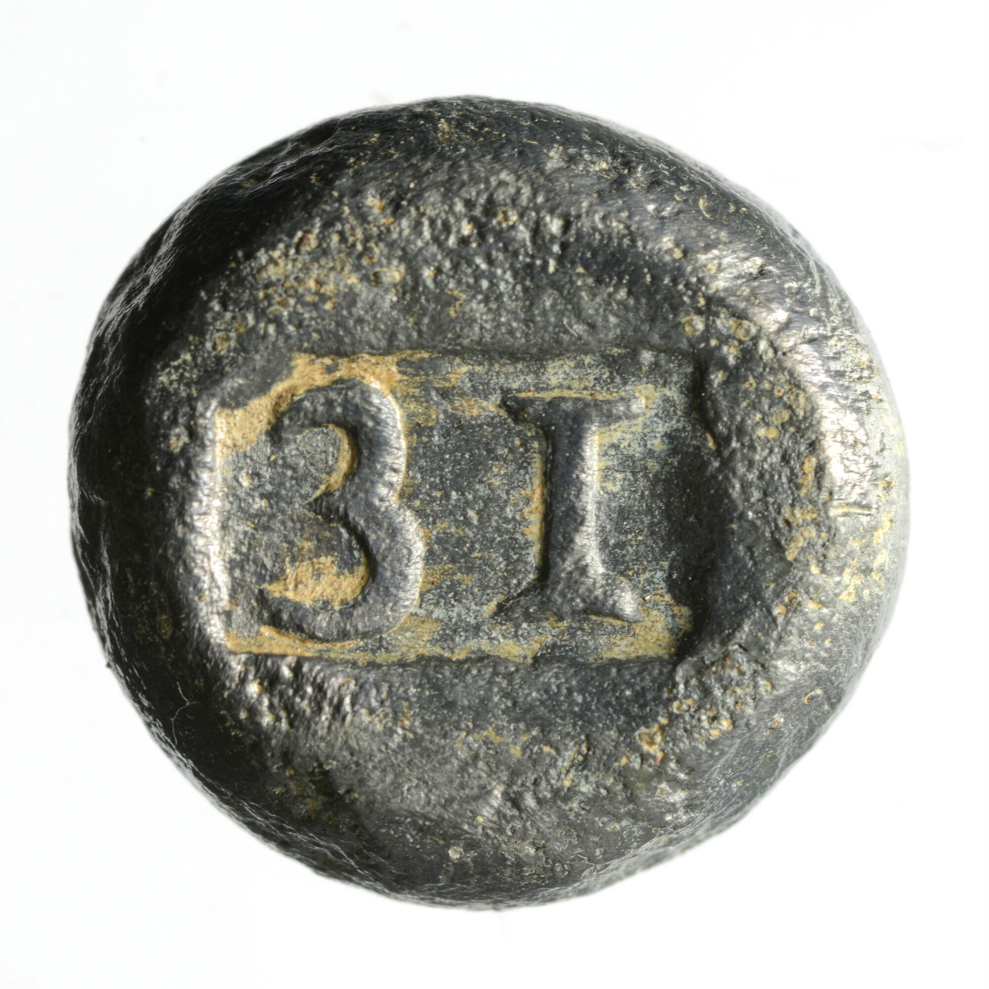 Blokgewicht; vz.: rechthoekige stempel met cijfer 31; gewicht: 15.26 gram