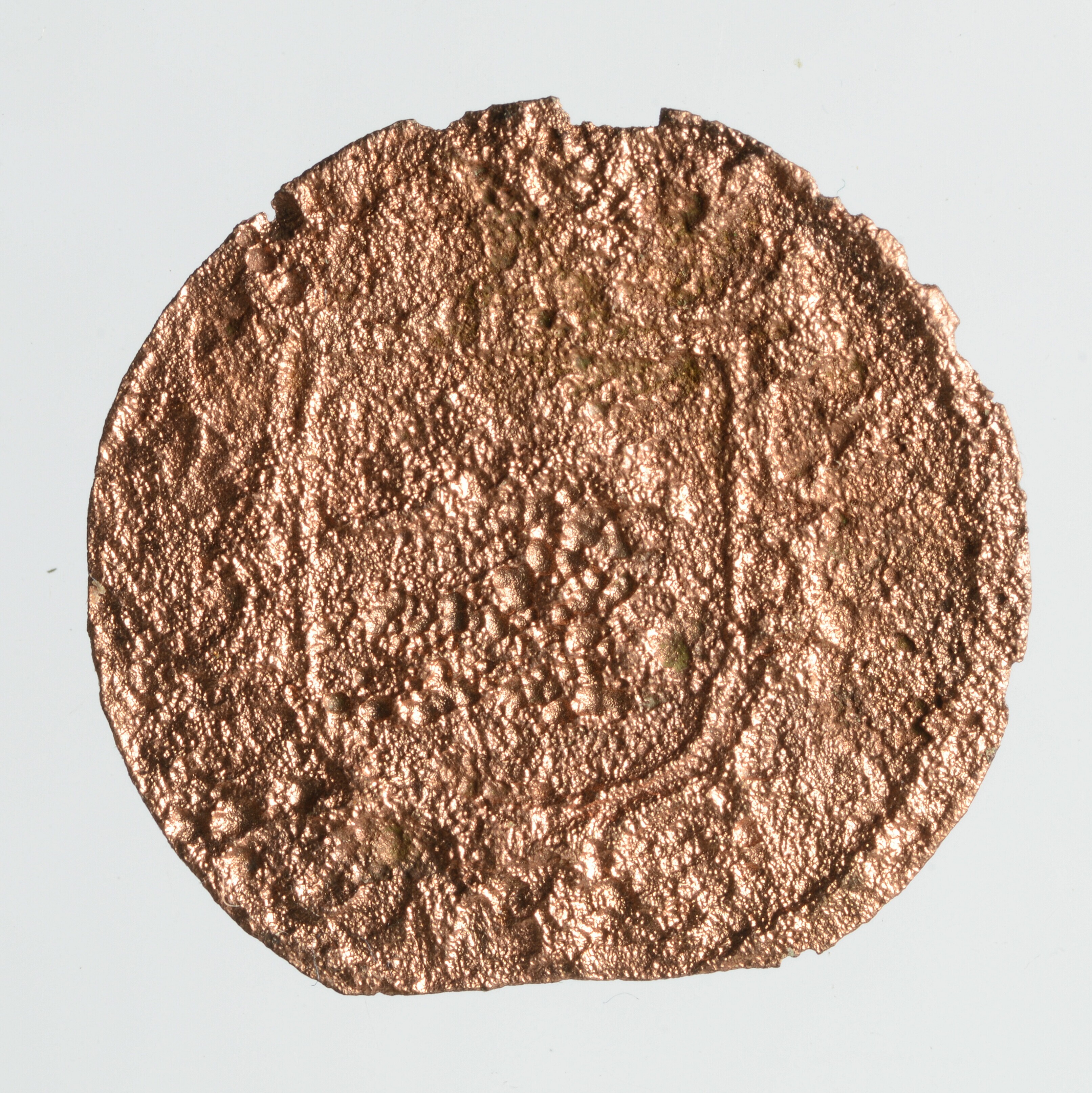 Duit; Friesland Provincie (1581-1795); vz.: in drie regels: FRI / SIA / 1617; kz.: met open kroon gekroond en versierd wapenschild van Friesland, met omschrift (leeuw) NISI•D[NS•]NO[BISCVM]; muntplaats: Leeuwarden; gewicht: 1.19 gram