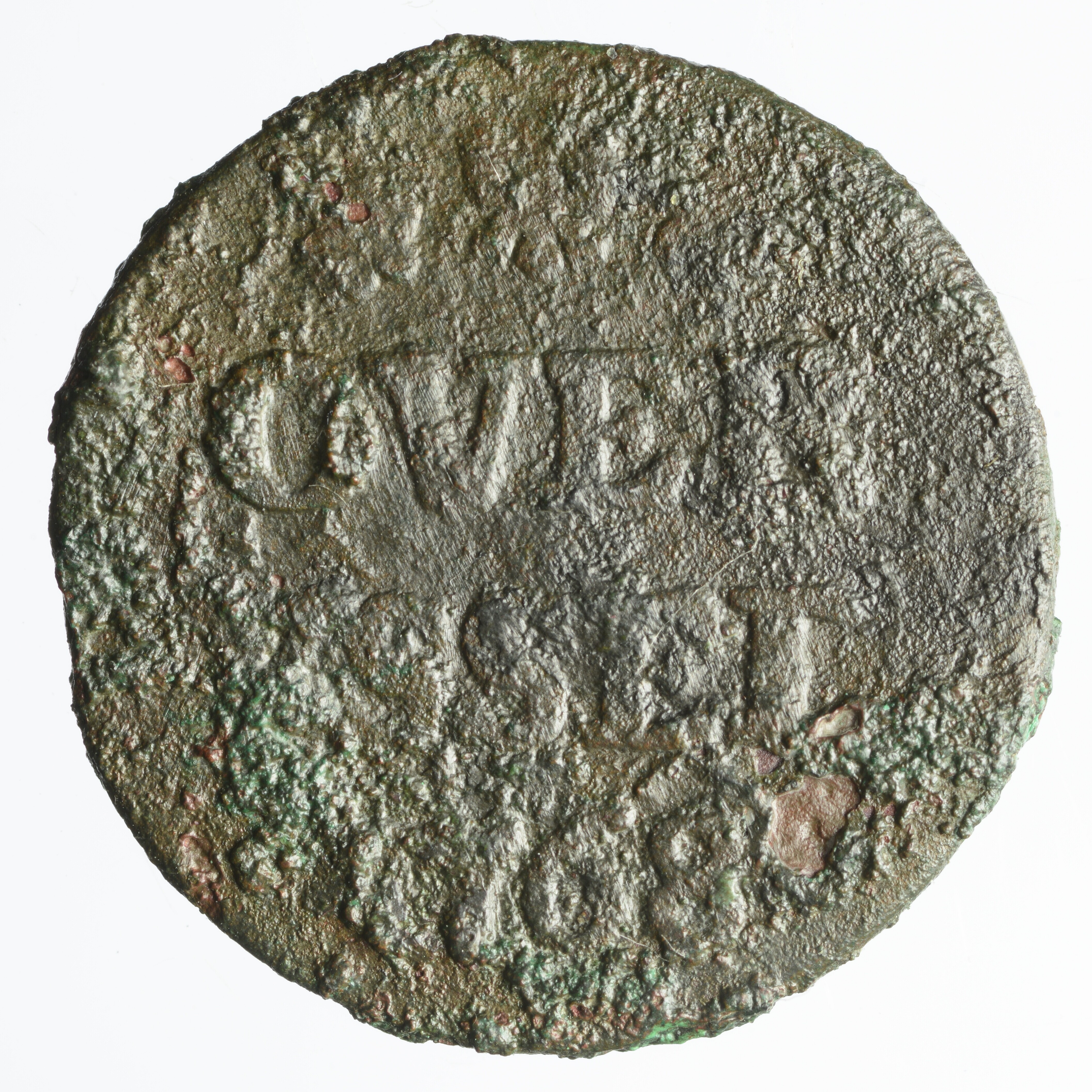 Duit; Provincie Overijssel (1581-1795); vz.: muntmeesterteken (onleesbaar) tussen twee rozetten met daaronder in drie regels OVER / YSSEL / 1768; kz.: gekroond wapen van Overijssel met golvende lijn, omschrift: onleesbaar; gewicht: 2.97 gram