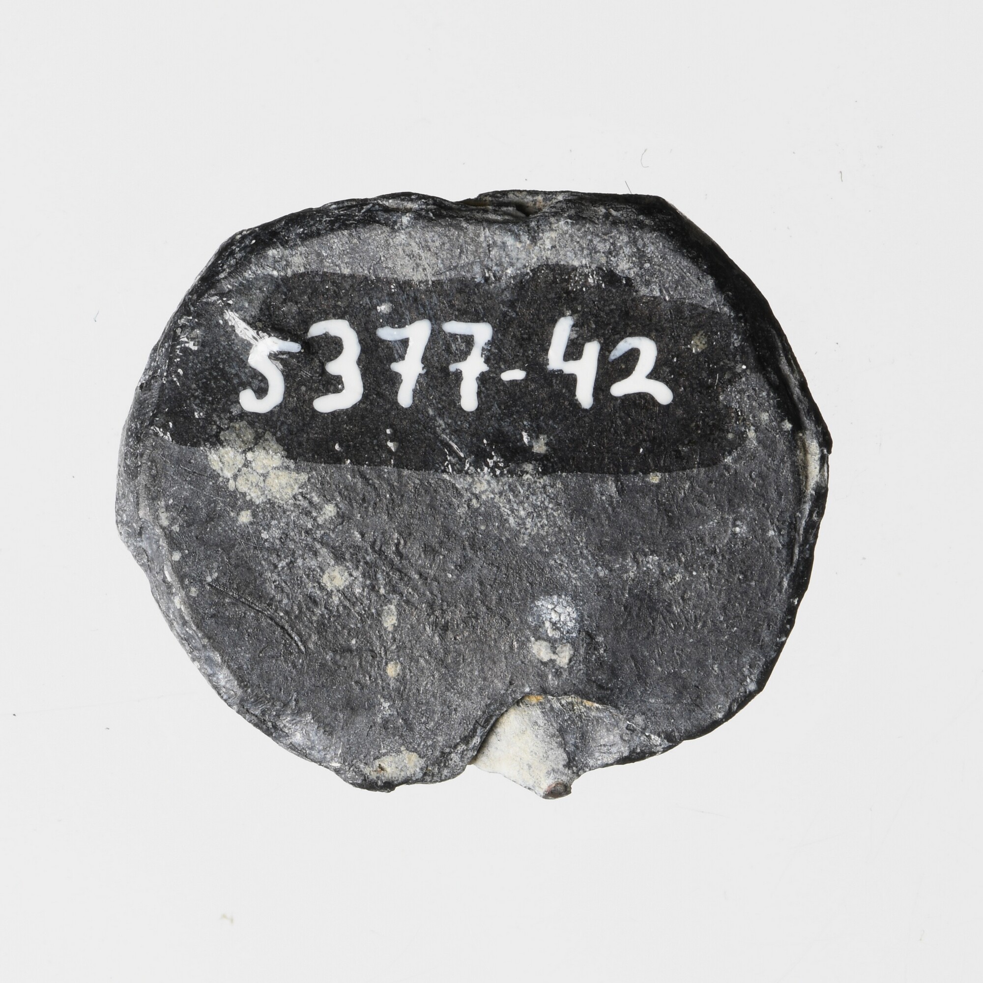 Textiellood, deelbewerkingslood; pb-tex; vz: roeiboot met daarboven drie sterren en daaronder drie zwemmende vogels, onderaan een parelrand; kz: geen afbeelding; gewicht: 3,76 gram