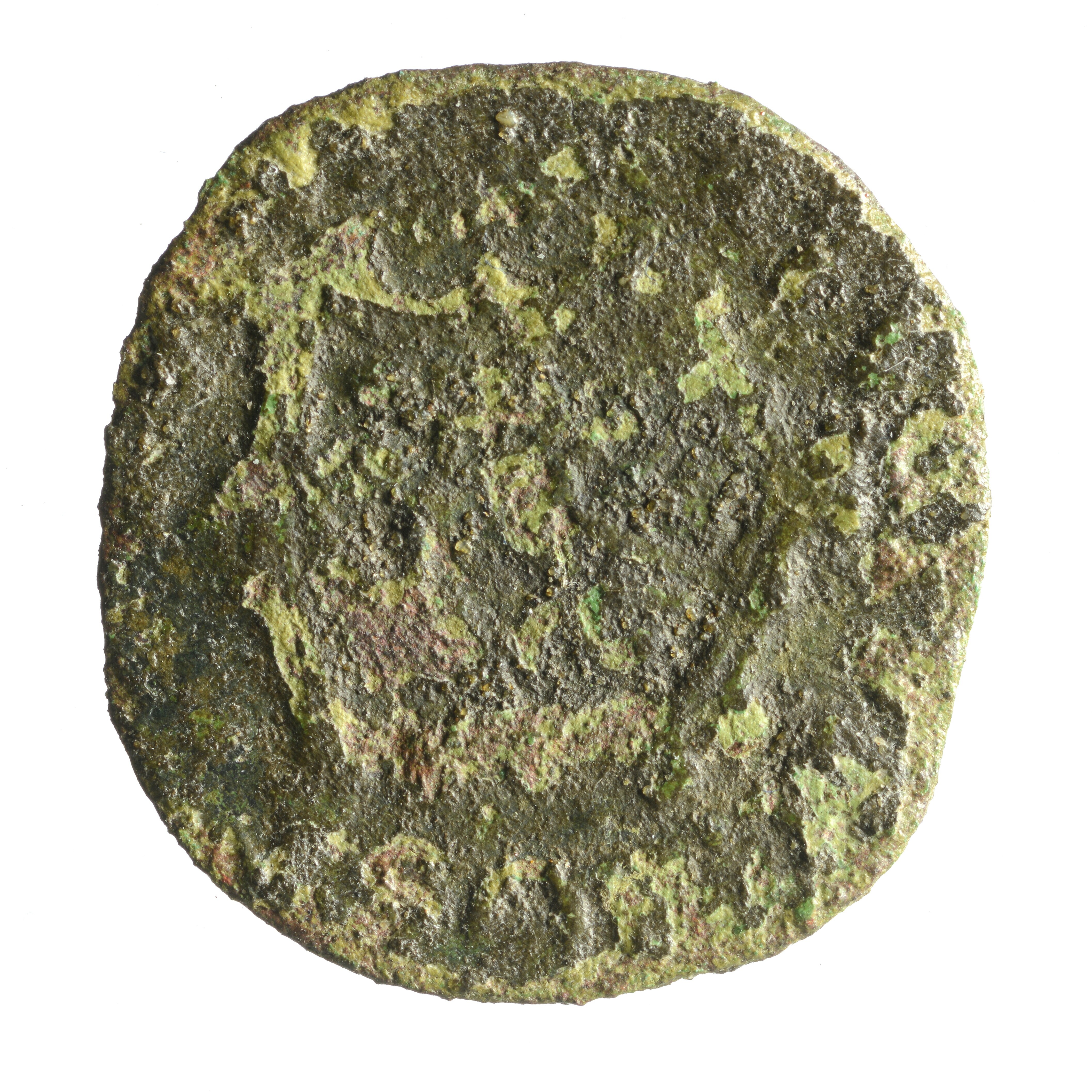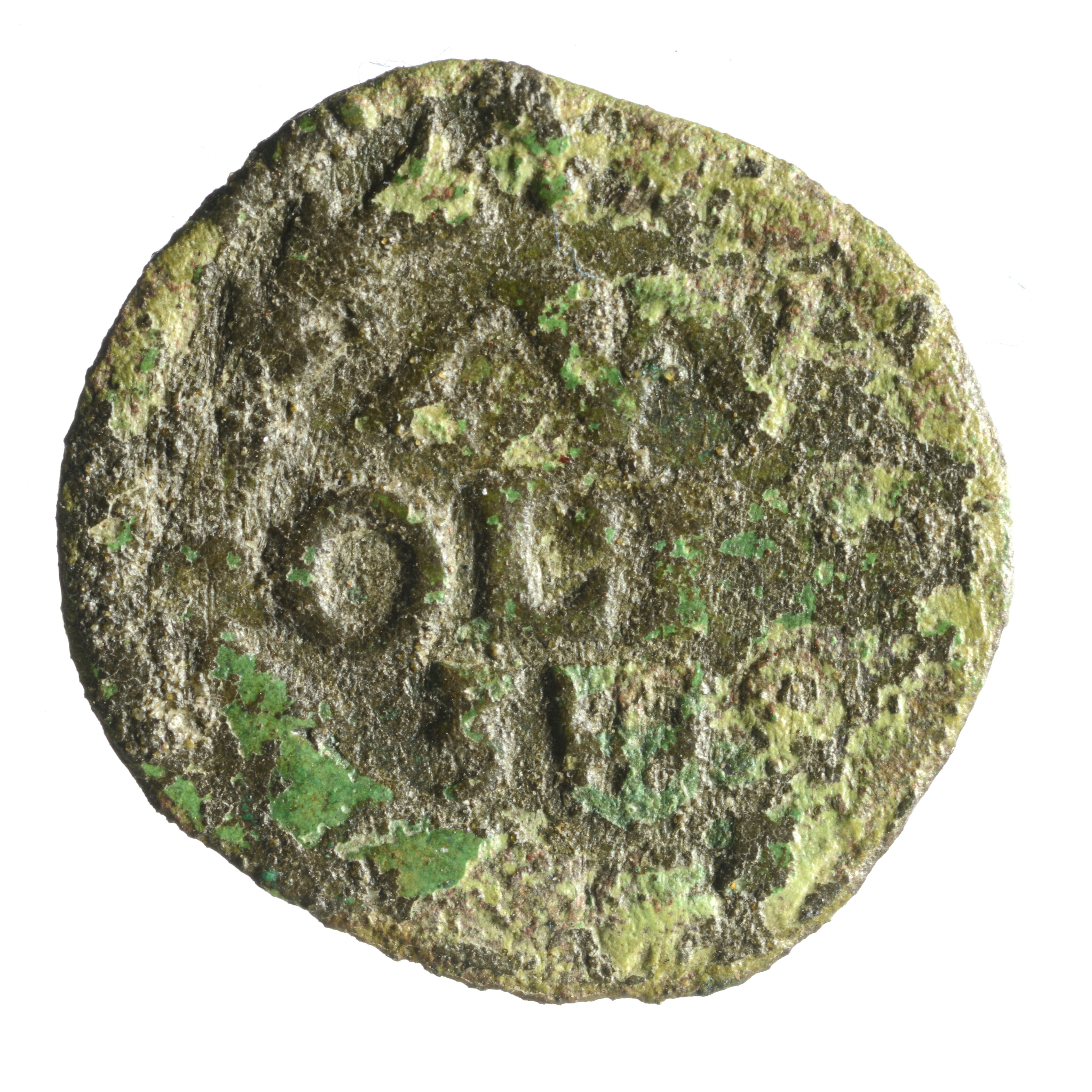 Duit; Overijssel Provincie (1581-1795); Steden: Zwolle; vz.: tulpkrans met daarin ZW OLLA in twee regels en 3(?); kz.: stadswapen van Zwolle met de heilige Sint Michael die een draak bevecht en de randtekst DEVS REFGIVM NOSTR; gewicht: 1.41 gram