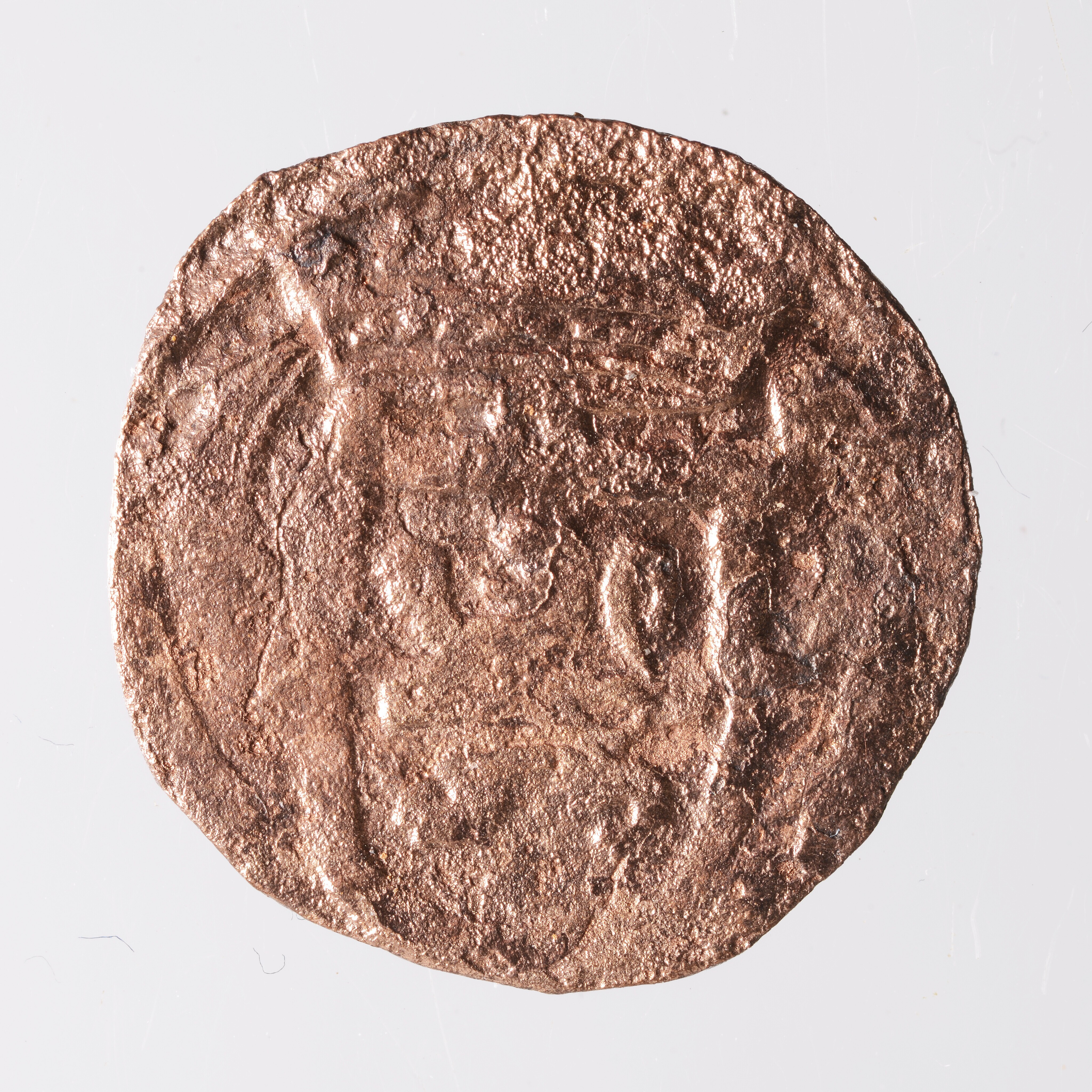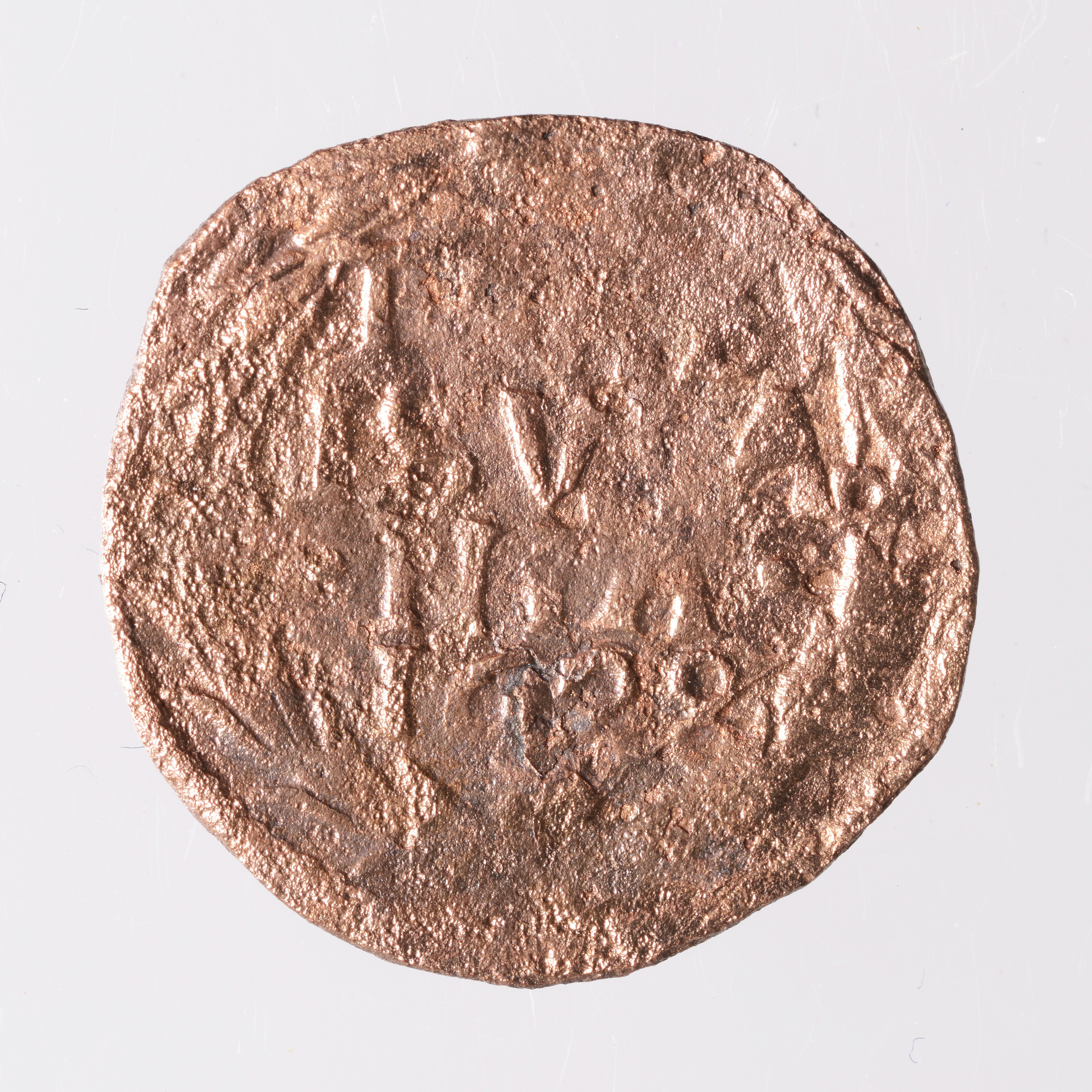 Duit; Overijssel Provincie (1581-1795); vz.: binnen een bladerkrans in vijf regels: [• • •] / T[RANS] / ISVLA / •NIA• / 1628 ; kz.: gekroond en versierd wapenschild van Overijssel; muntplaats: Kampen; gewicht: 1.74