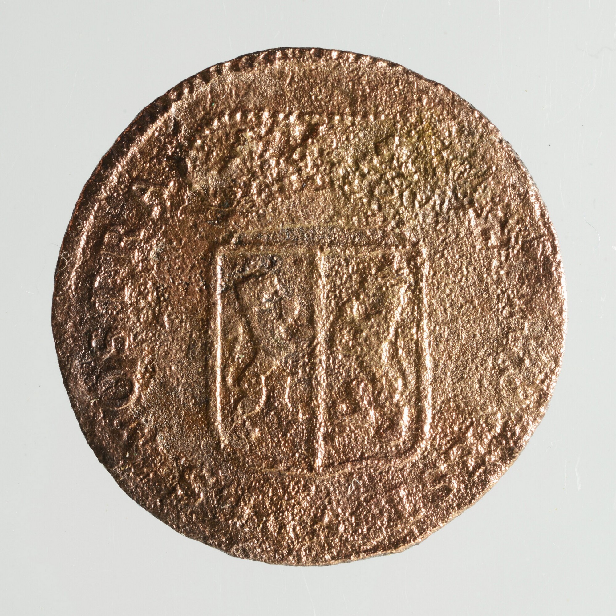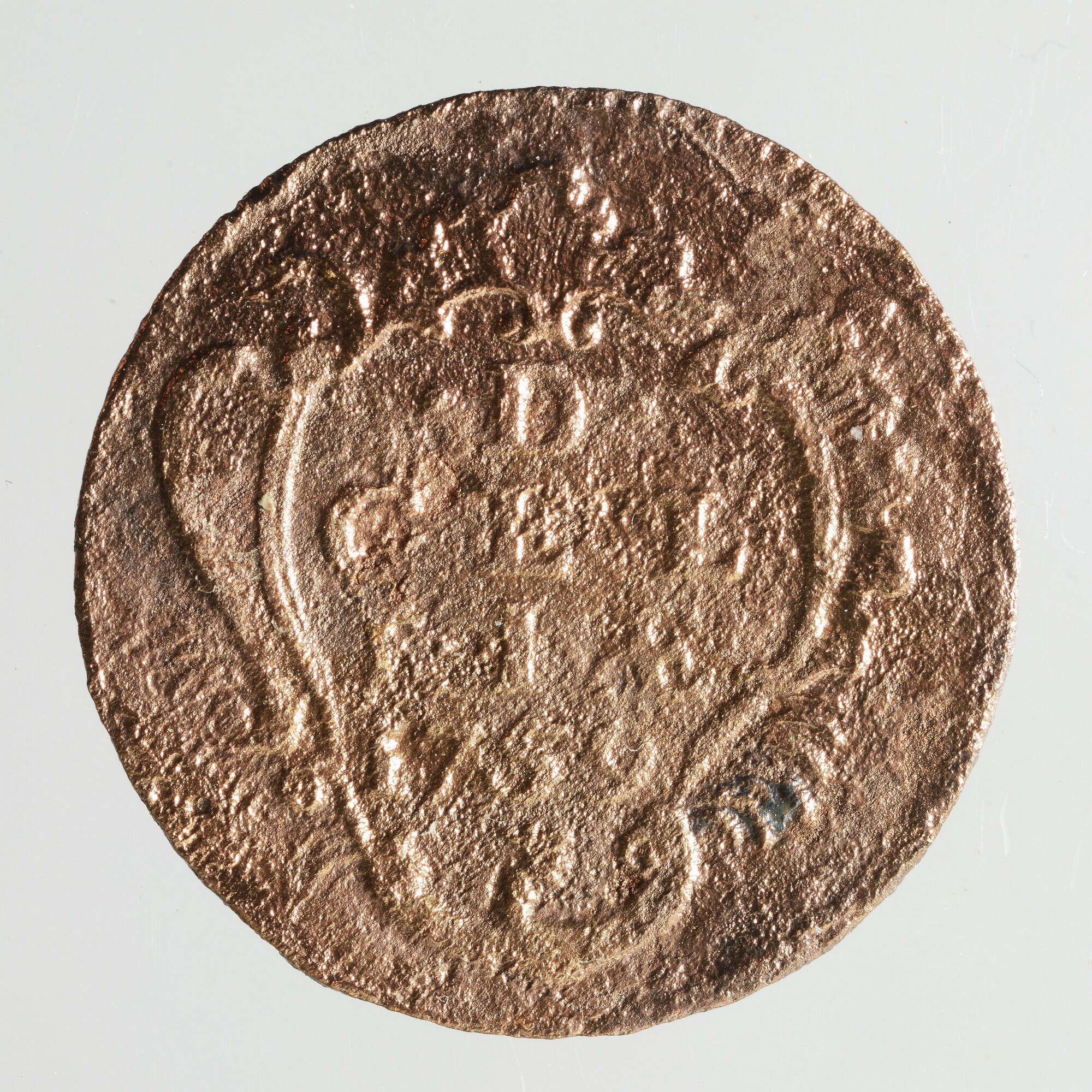 Duit; Gelderland Provincie (1581-1795); vz.: een zgn. rococostijl versiering met daarin de tekst .D. GEL RIÆ in drie regels. Daaronder het jaartal 1759 en het muntmeesterteken van muntmeester Carel Christiaan Novisadi, een afgeknotte boom; kz.: gekroond wapen van Gelderland en randtekst: IN DEO. EST. SPES NOSTRA; gewicht: 2.08 gram