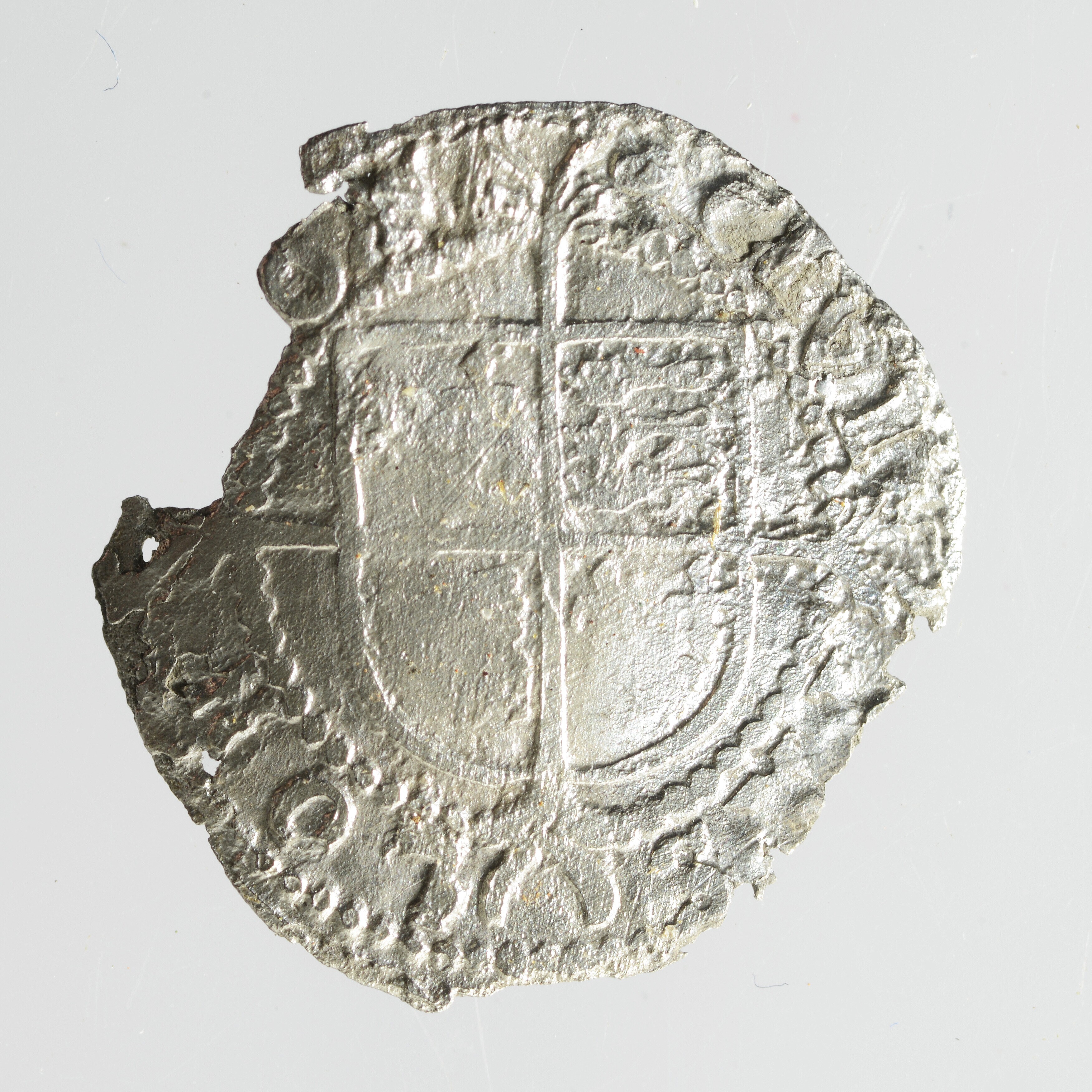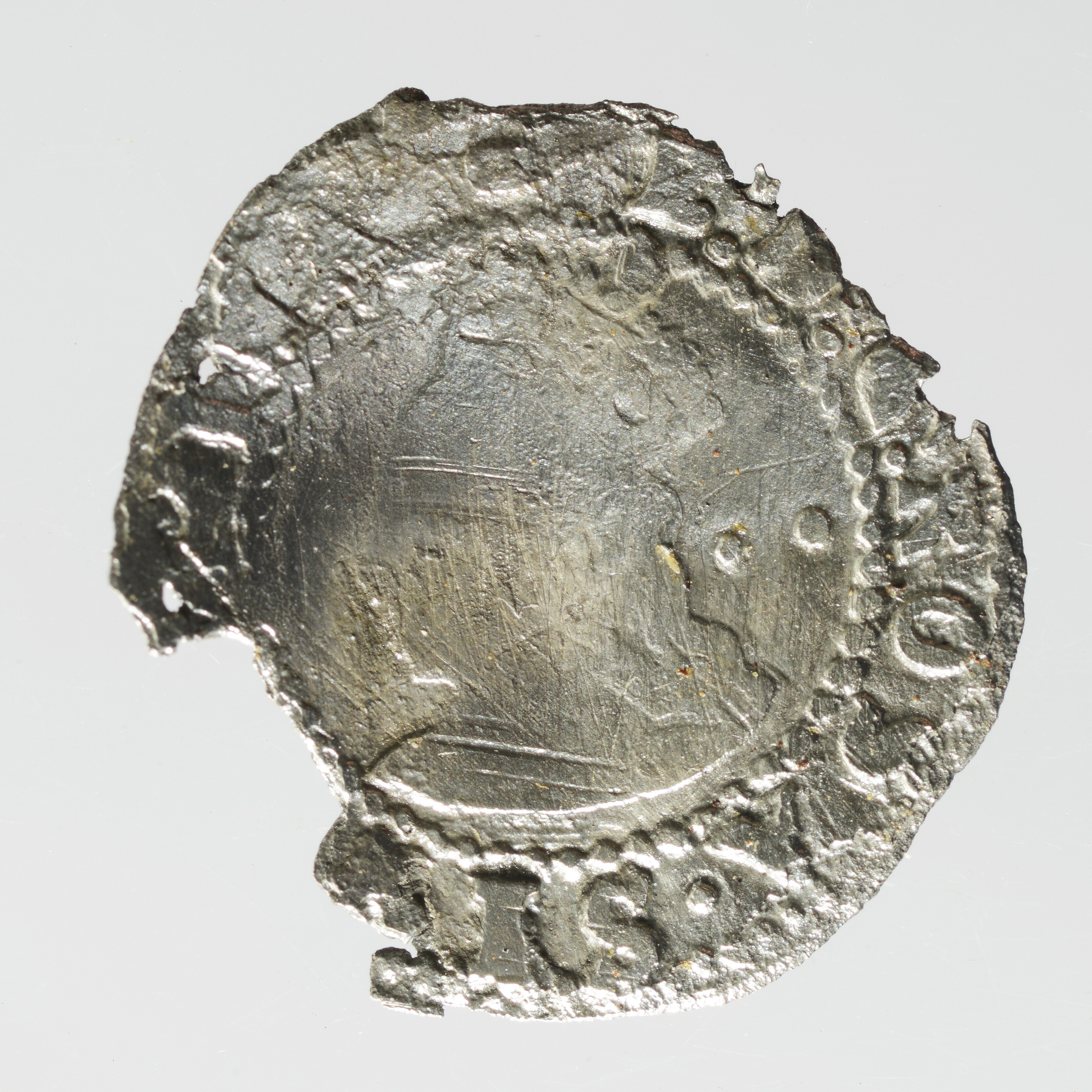 Twopence, Half Groat; Engeland; Elizabeth I (1558-1603); Vijfde muntslag (1582-1600); vz.: gekroonde buste naar links van Elizabeth I, omschrift: E D [G] ROSA SI[N SPINA]; kz.: wapenschild door een lang gevorkt kruis gevierendeeld, met linksboven en rechtsonder drie Franse lelies en rechtsboven en linksonder drie leeuwen met hun kop 'en face' gericht, omschrift: het muntmeesterteken ...