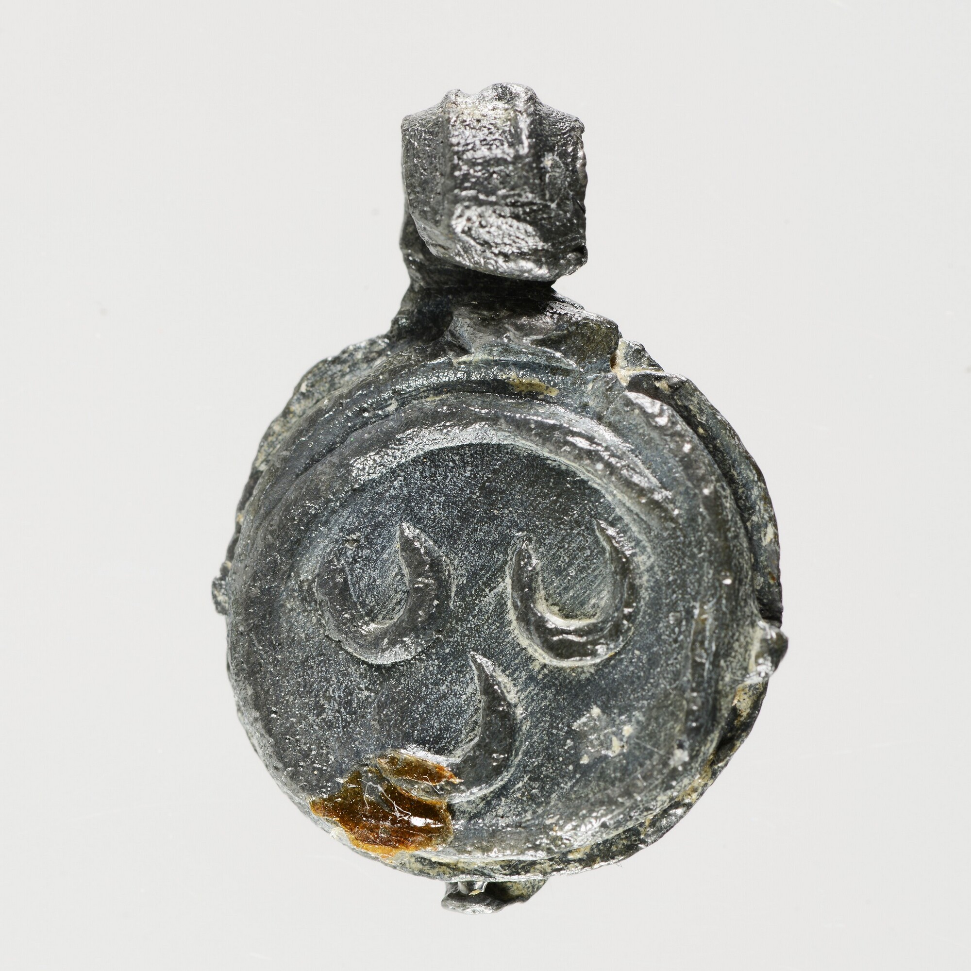 Haringnetlood; vz.: drie halve maantjes; herkomst: Krimpenerwaard; gewicht: 7.31 gram