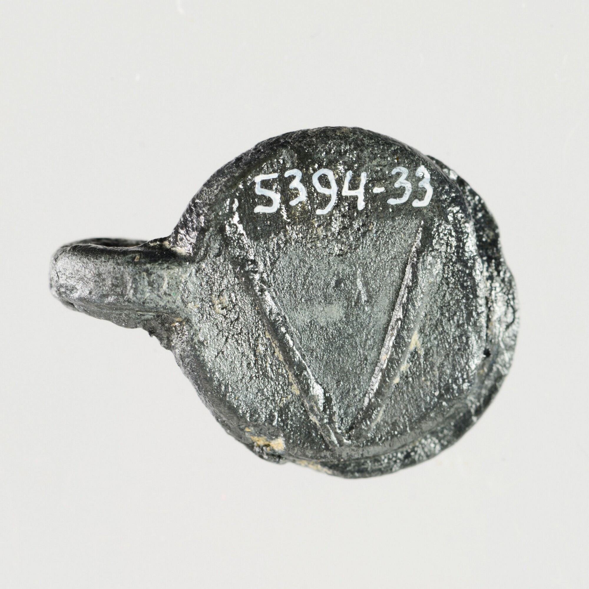 Textiellood; vz.: letter V; kz.: geen stempel; gewicht: 7.64 gram
