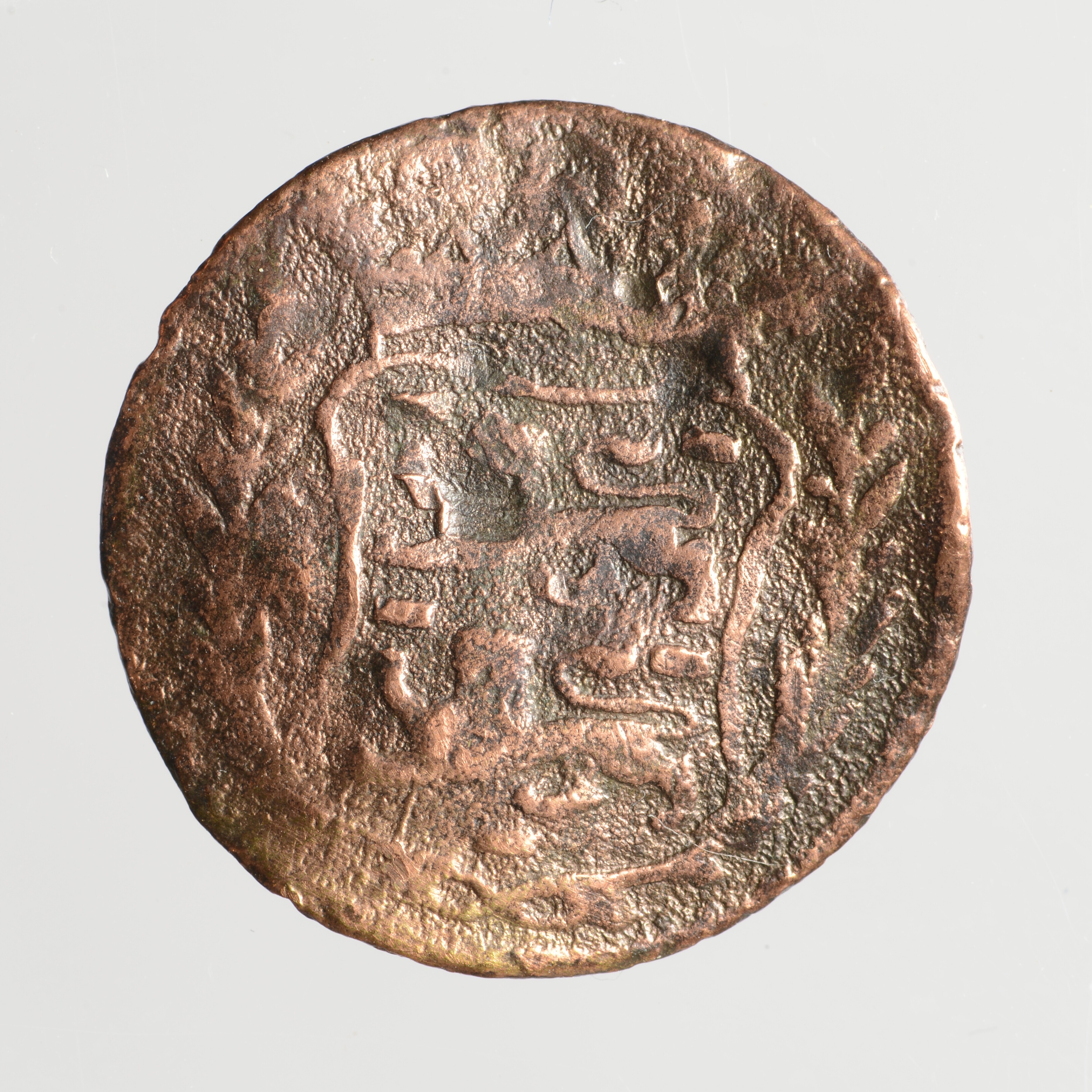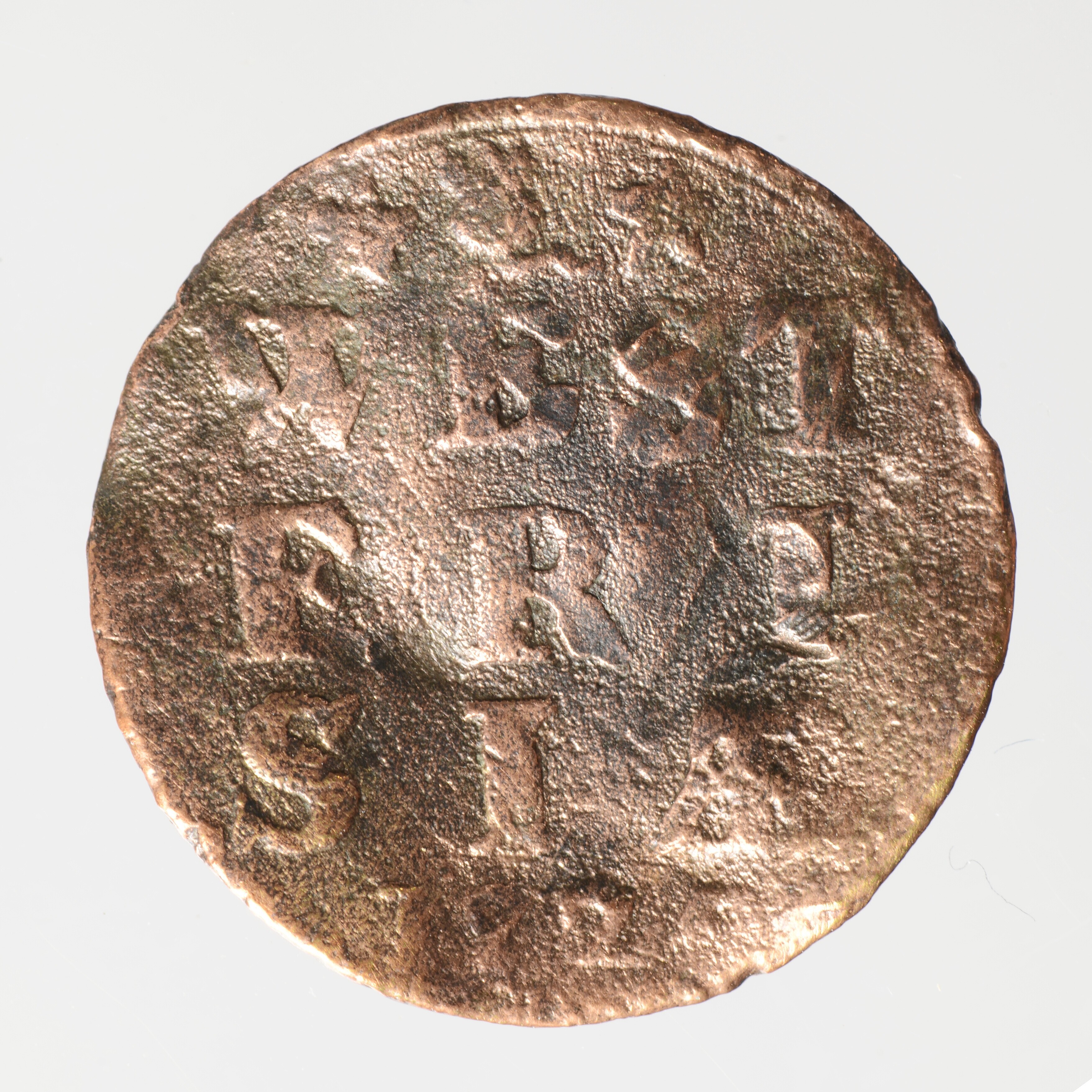 Duit; West-Friesland; vz.: (knol) / WEST / FRI / SIAE / 1722 in vijf regels; kz.: gekroond wapen van West-Friesland, aan beide zijden versierd met lauwertakken; muntplaats: Hoorn; gewicht: 2.29 gram